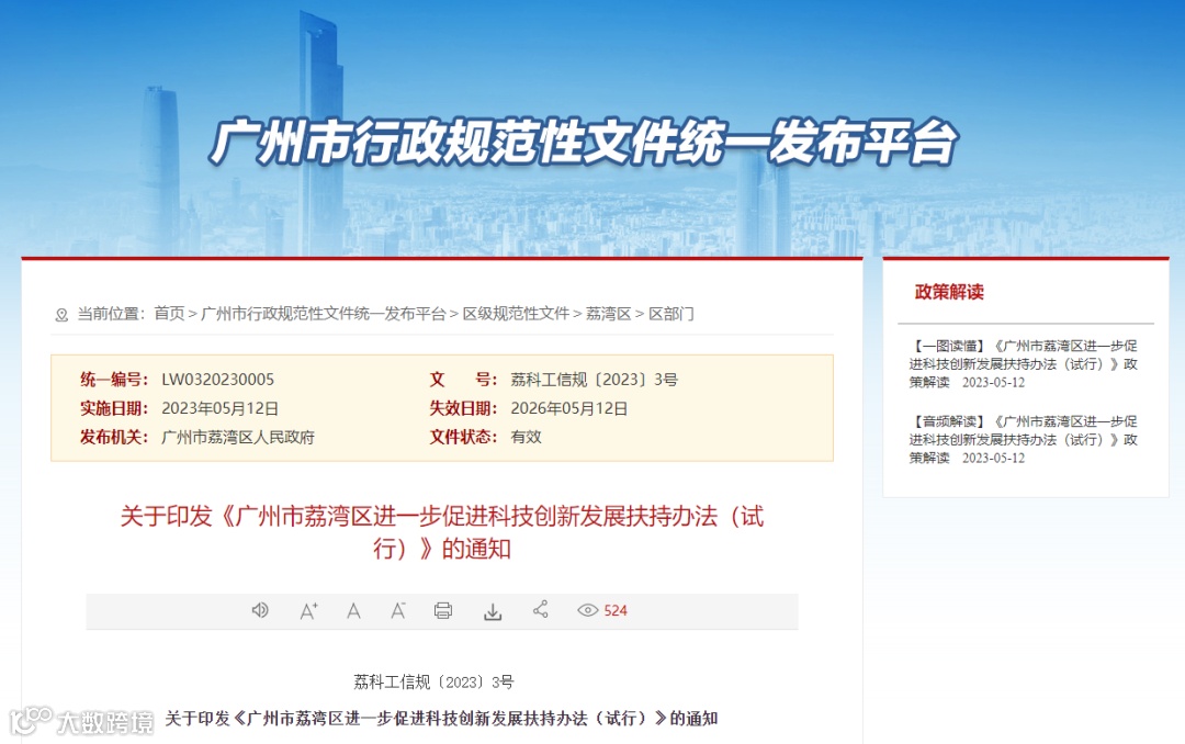 广州市荔湾区进一步促进科技创新发展扶持办法(试行)