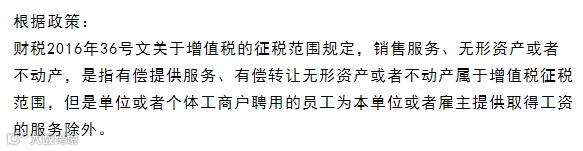 也就是说和单位有劳动合同关系的员工为单位提供的服务不属于增值税征收范围,支付员工的工资可以造表发放,不需要员工为单位提供发票。