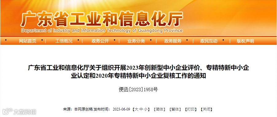 为贯彻落实全省高质量发展大会精神,进一步加强优质中小企业梯度培育管理,根据《广东省工业和信息化厅关于印发优质中小企业梯度培育管理实施细则的通知》(粤工信规字〔2022〕3号,以下简称《实施细则》),参照有关省份做法,并请示工业和信息化部中小企业局,现就组织开展2023年创新型中小企业评价、专精特新中小企业认定和2020年专精特新中小企业复核工作的有关事项通知如下: