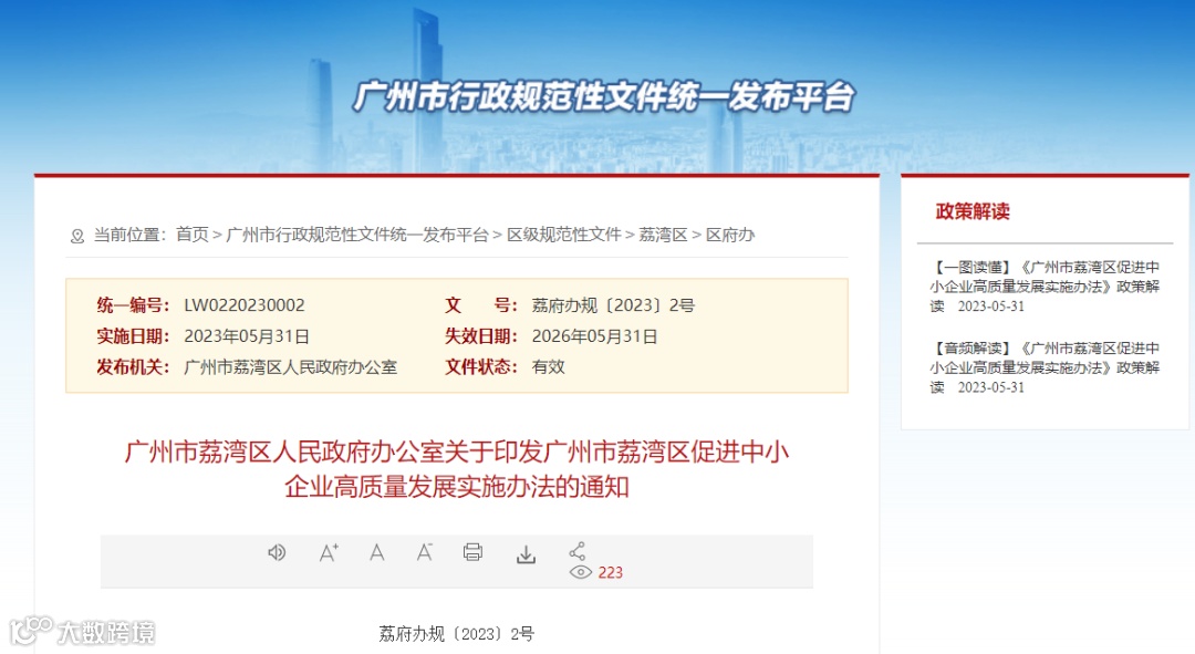 广州市荔湾区促进中小企业高质量发展实施办法
