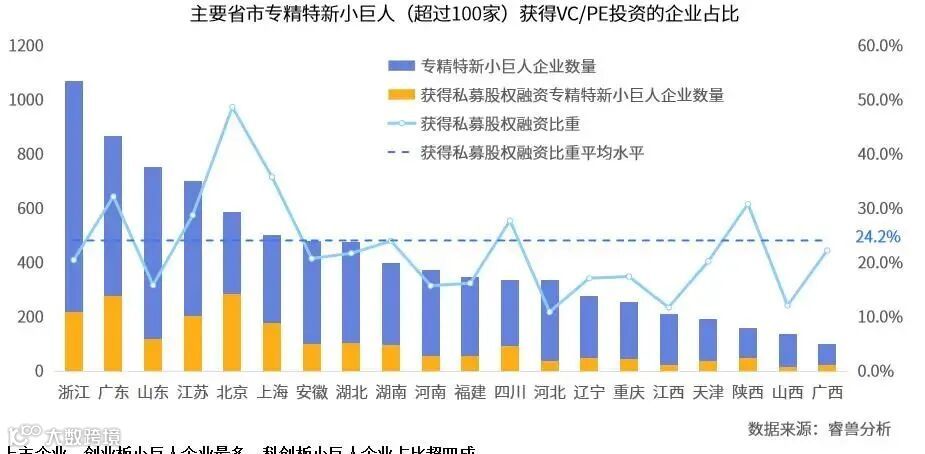 获得VC/PE投资的专精特新小巨人企业占比不足1/4