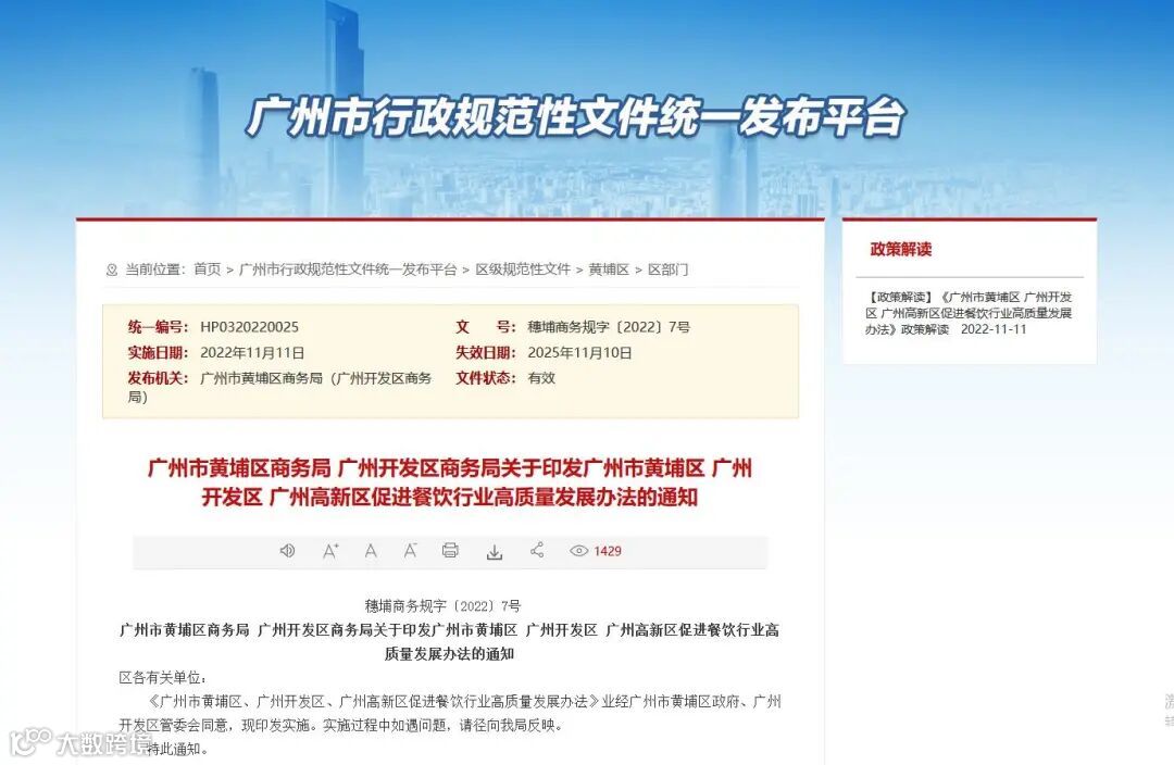 近日,广州市黄埔区、广州开发区商务局,正式对外发布《广州市黄埔区 广州开发区 广州高新区促进餐饮行业高质量发展办法》(简称“餐饮8条”)