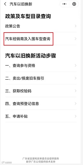 1.补贴对象通过“粤省事”小程序“汽车以旧换新”栏目查询“广东省2022年汽车以旧换新推广车型”和参与汽车以旧换新的经销商名单。到店购车时,请与汽车经销商确认补贴政策是否在实施。