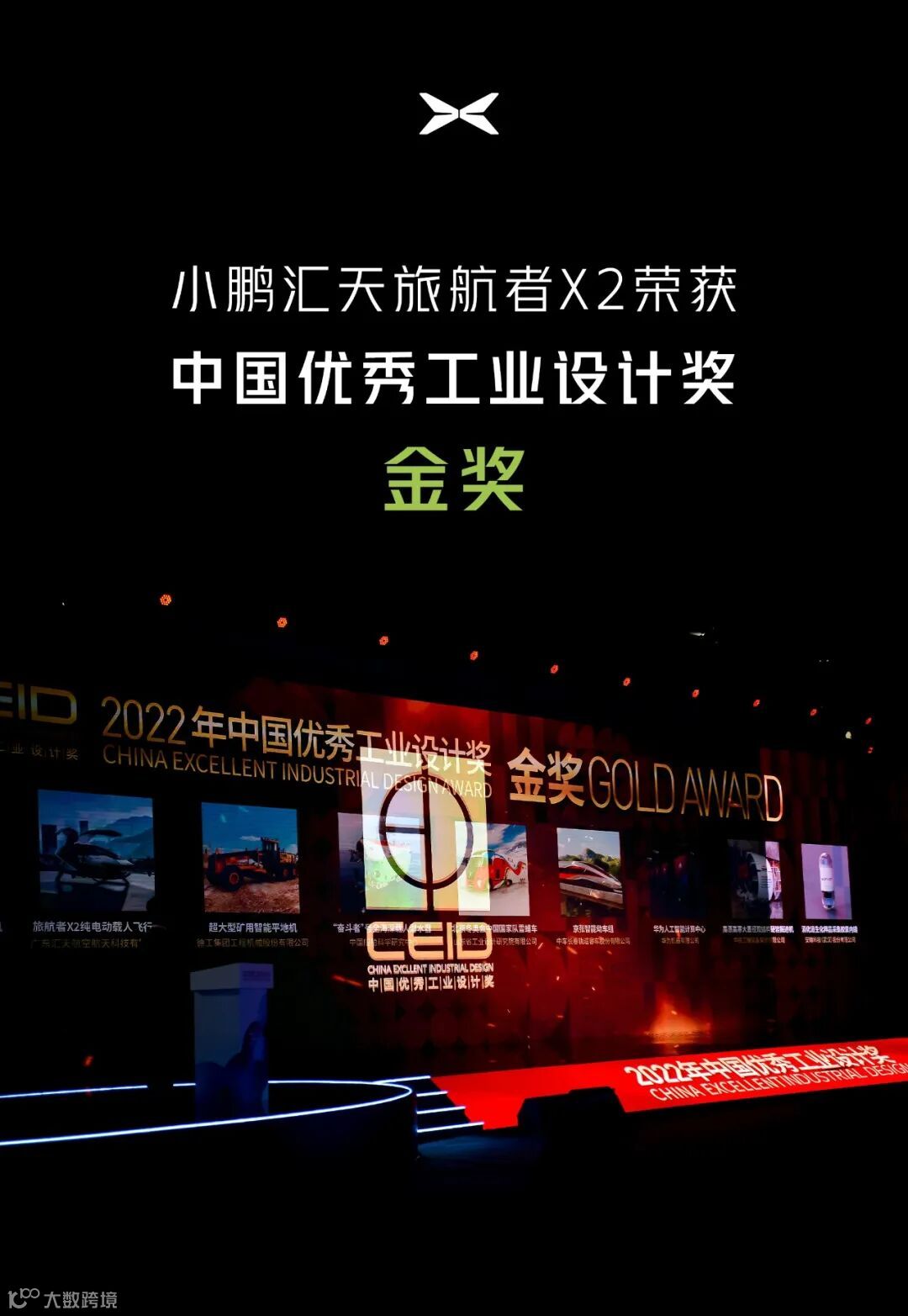 小鹏汇天旅航者X2荣获中国优秀工业设计奖 金奖!