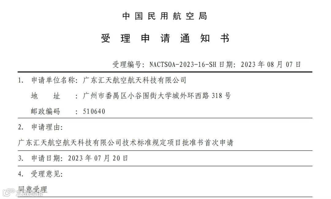 (小鹏汇天航姿基准系统CTSOA受理申请通知书)