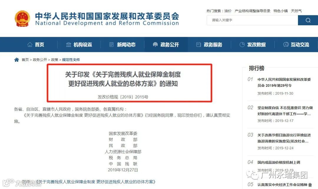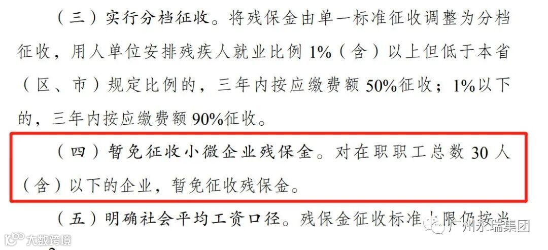 发改委等六部门印发《关于完善残疾人就业保证金制度更好促进残疾人就业的总体方案》(发改价格规[2019]2015号),明确自2020年1月1日起:对在职职工人数30人(含)以下的企业,暂免征收残保金。