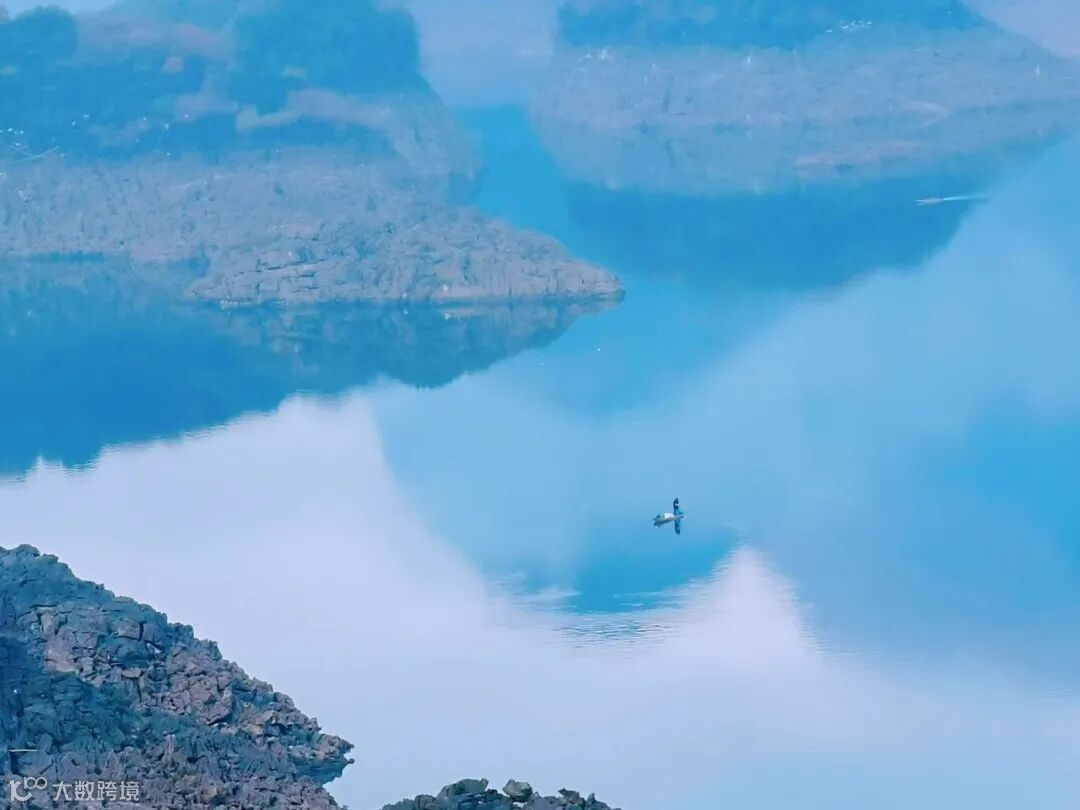 湖水明净如镜,四周群峰林立