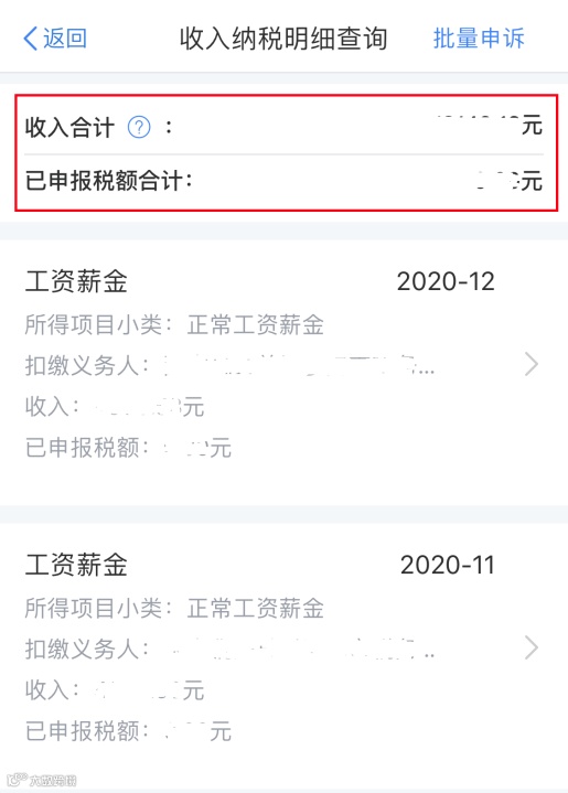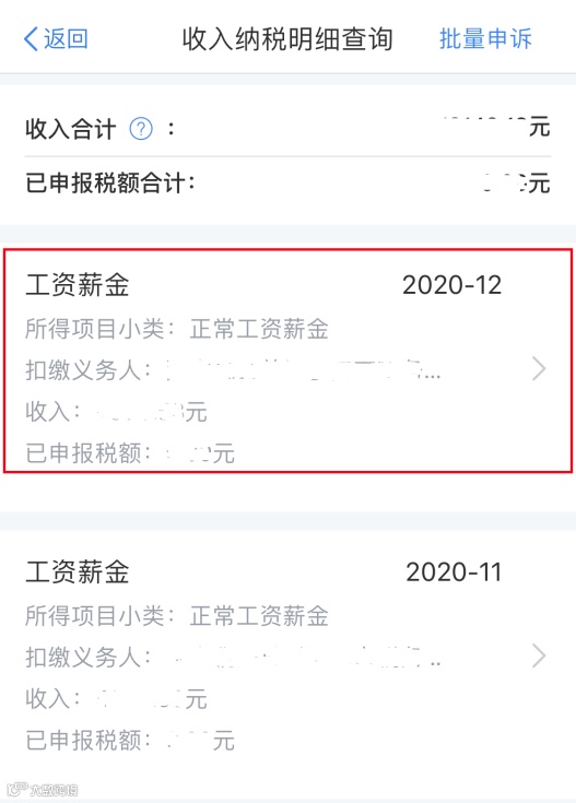 查看确认您2020年度综合所得收入纳税明细