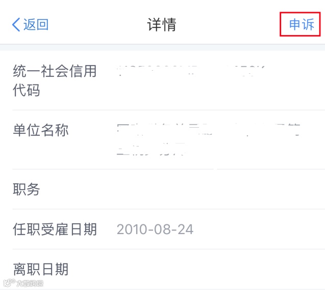 若您发现“任职受雇信息”里出现您从未任职的单位,您可以点开该单位,再点击右上角【申诉】。