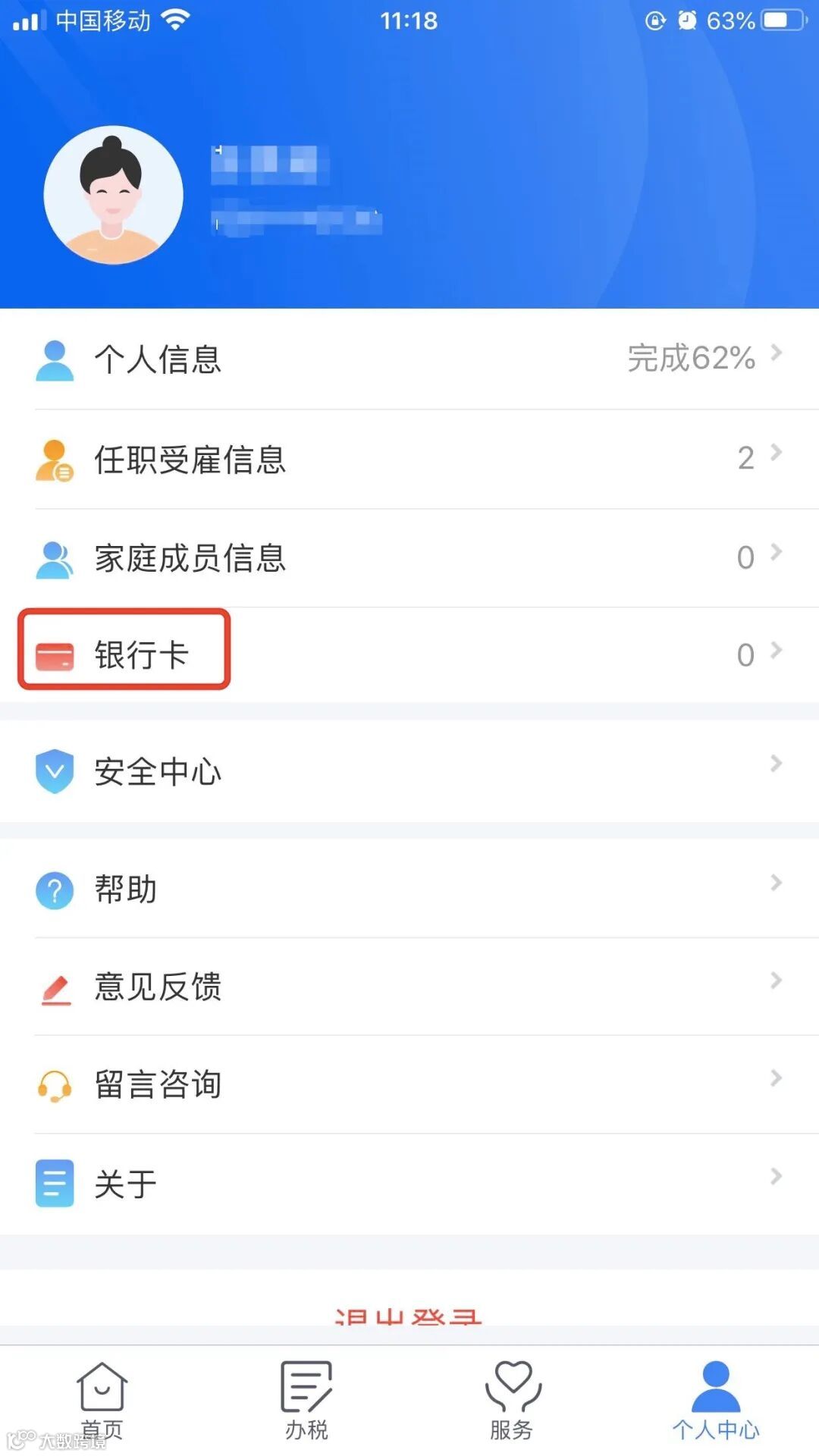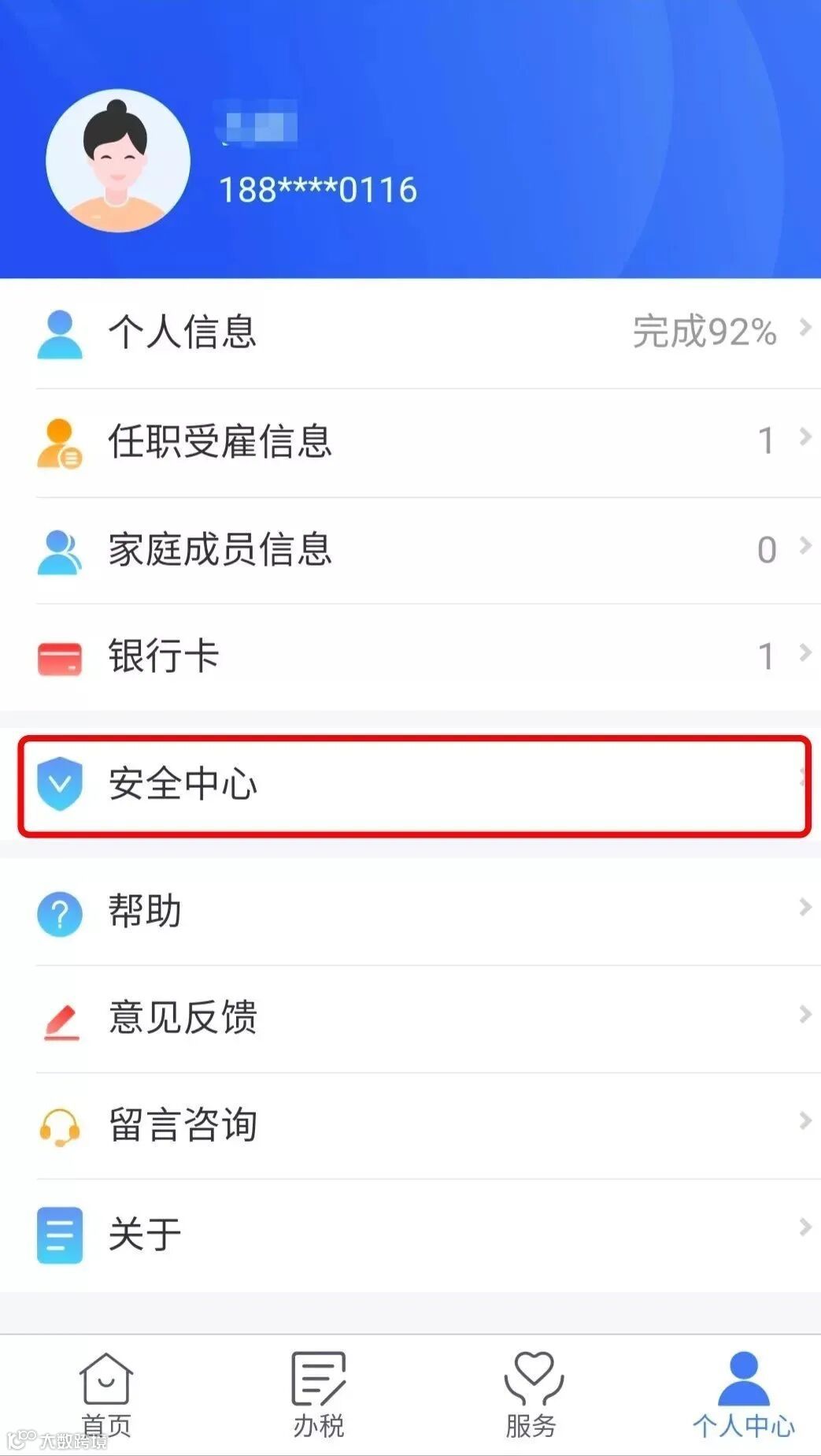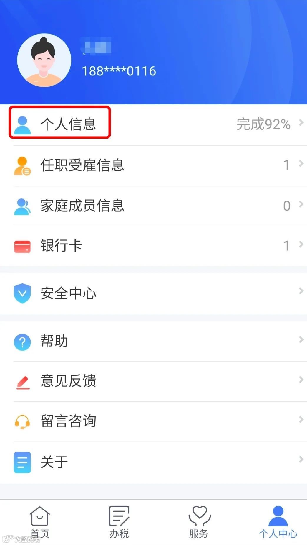 3.1 登录后选择【个人中心】页面,完善【个人信息】