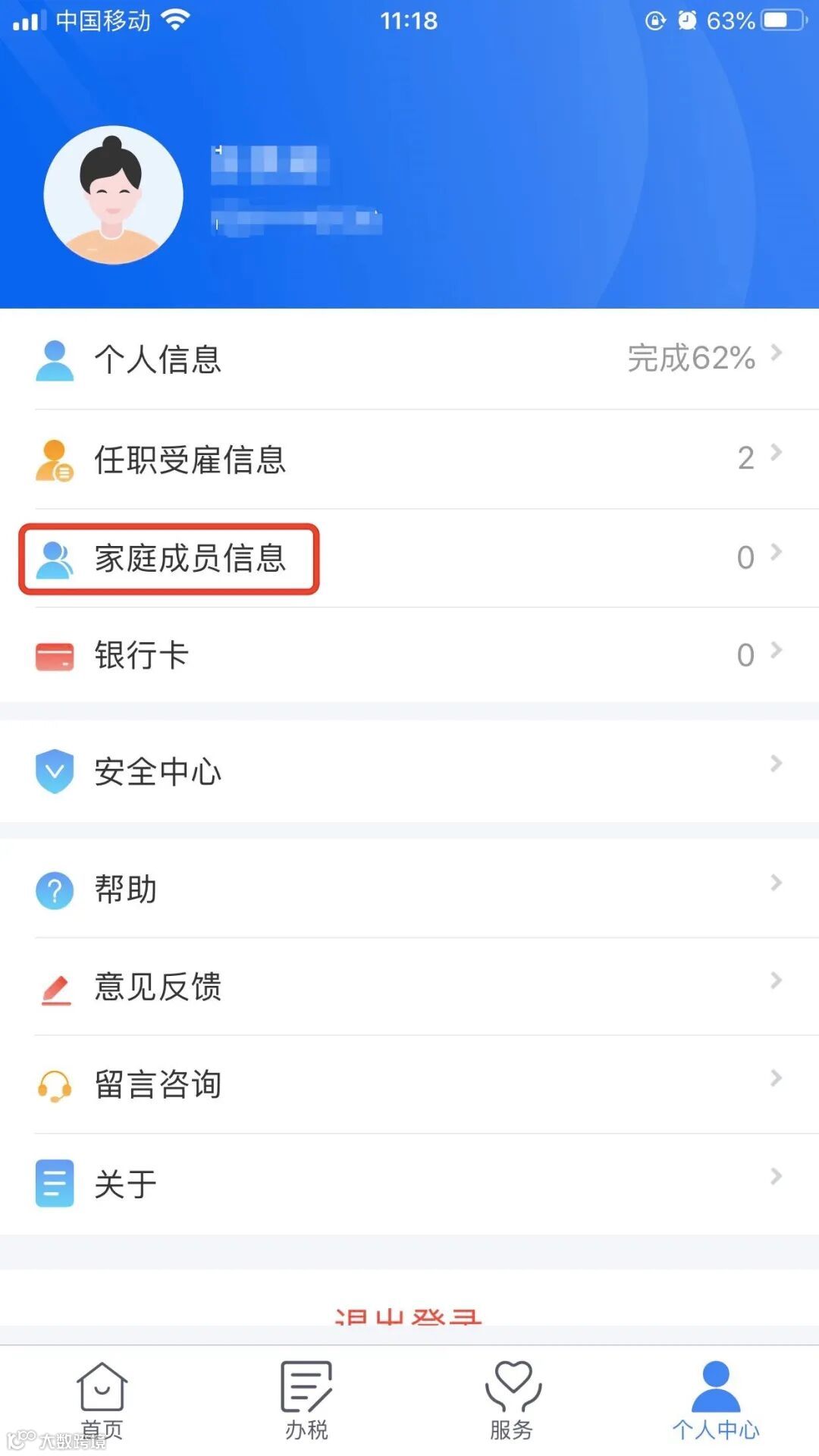 为方便下一步核对专项附加扣除信息,请先完善家庭成员信息,如配偶、子女、父母。