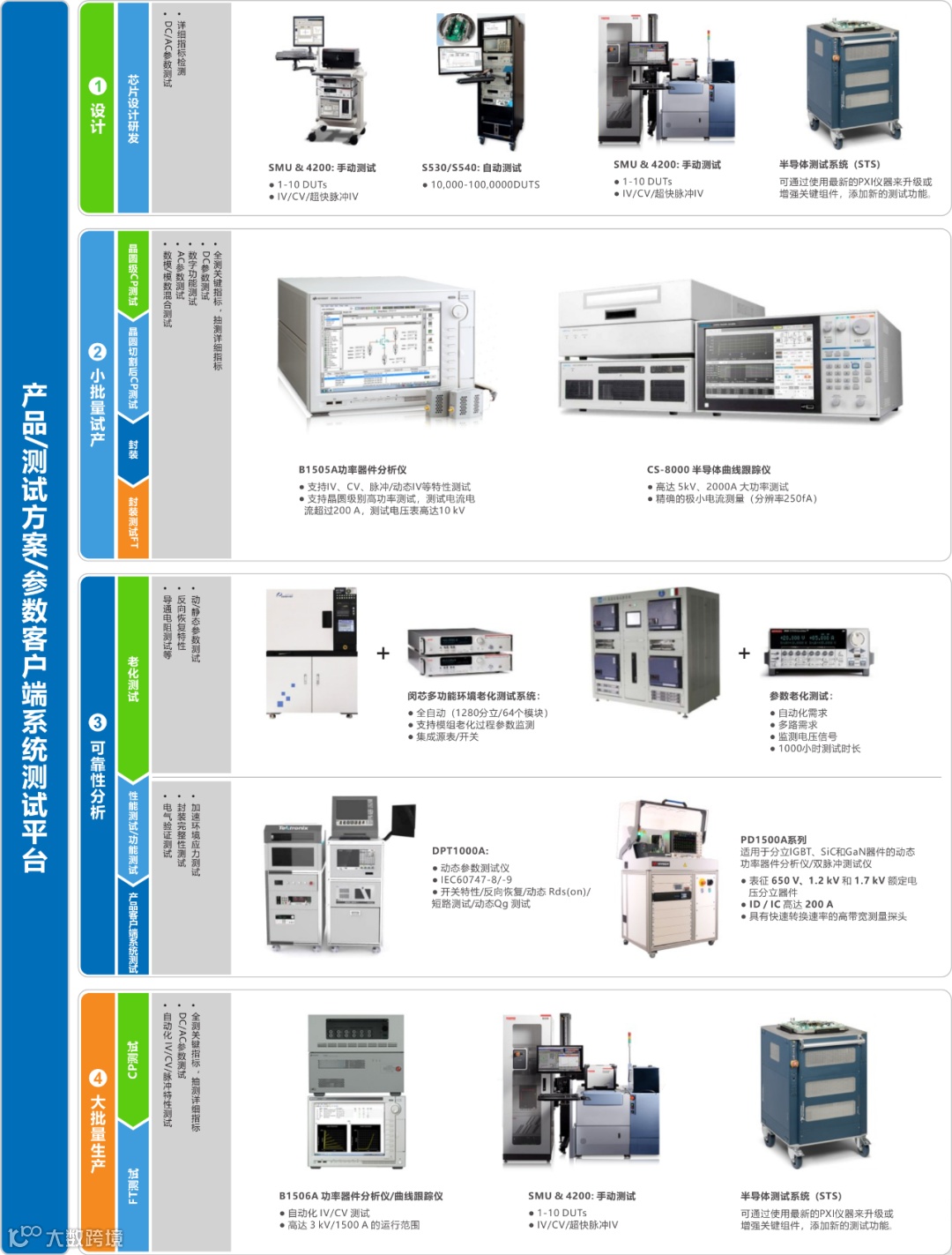 随着新能源汽车、高速铁路、高速光电传感器、大功率照明设备的不断发展,使用的半导体器件功率越来越大,电压和电流的增大为测试带来了新的挑战。