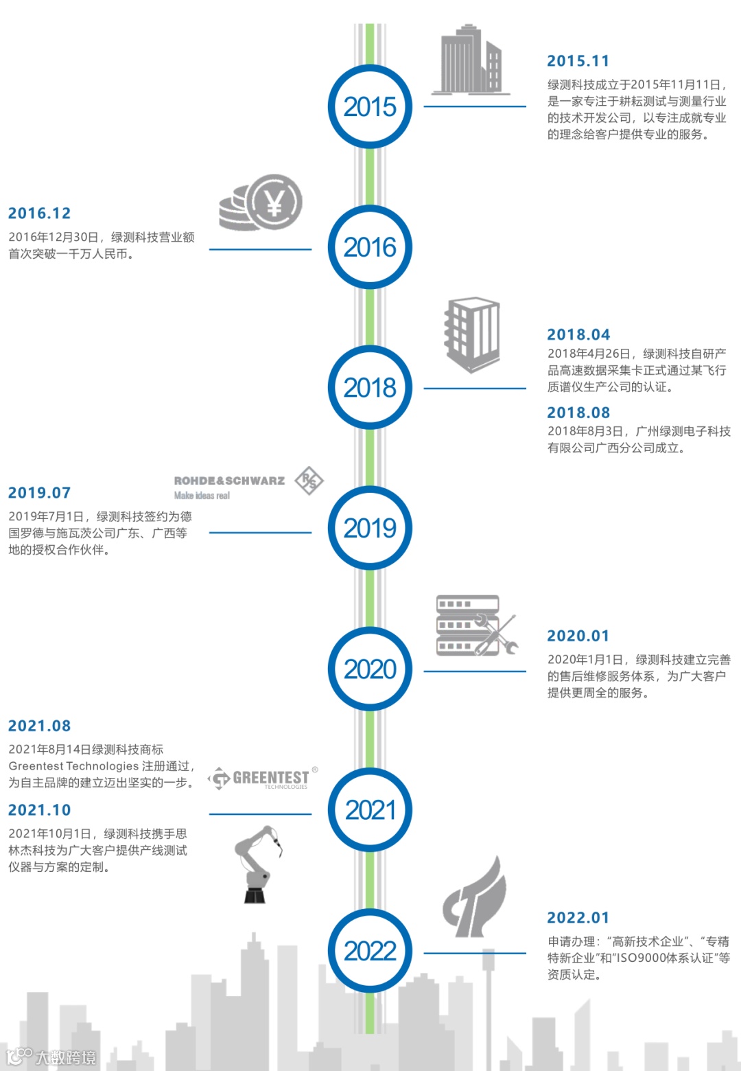 绿测科技成立于2015年11月11日,是一家专注于耕耘测试与测量行业的技术开发公司,以专注成就专业的理念给客户提供专业的服务。