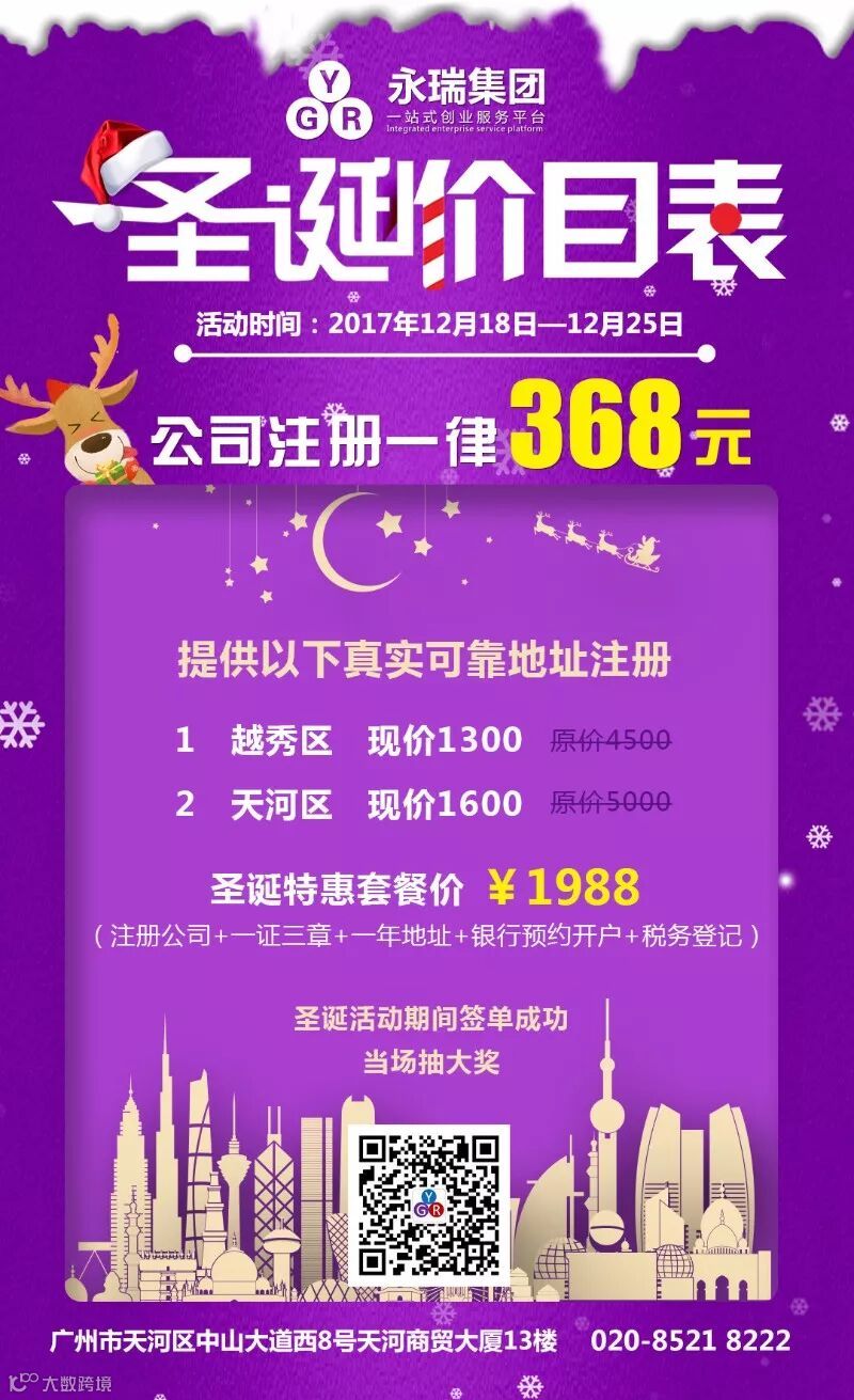 此外,活动期间我们还推出了公司注册368元套餐、圣诞特惠套餐,机不可失,超低价格只享一周时间!