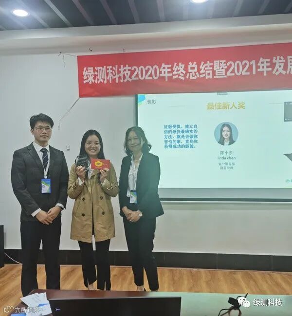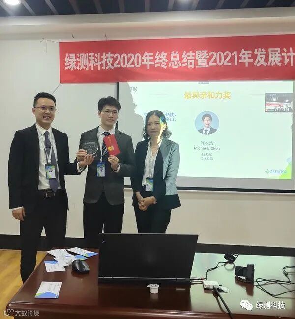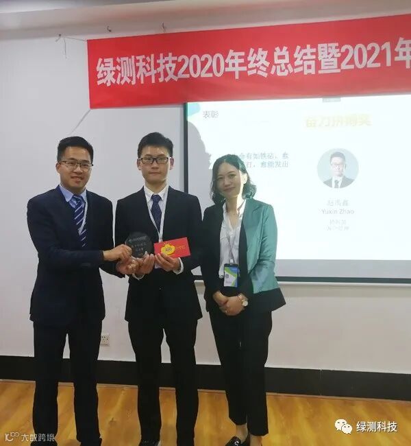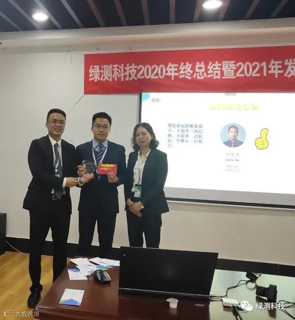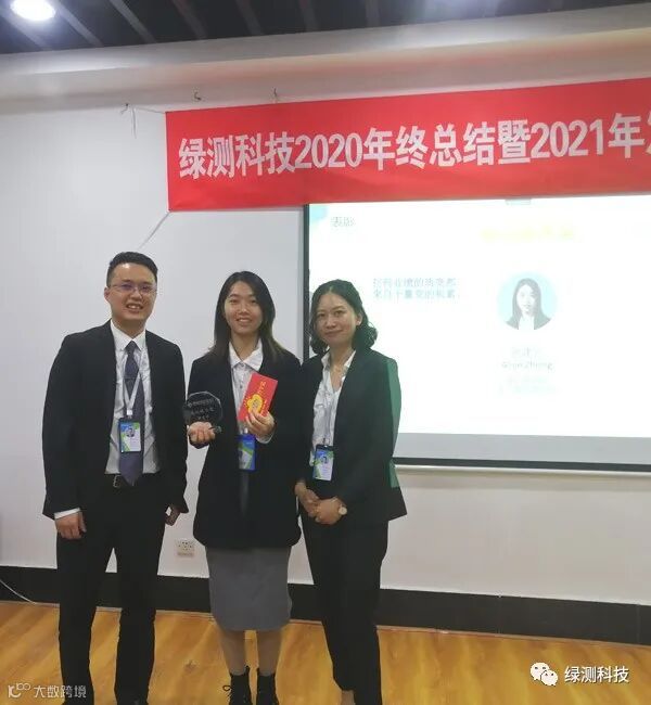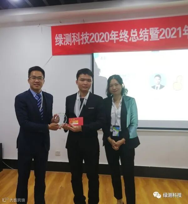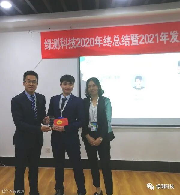 绿测能够取得今天的好成绩离不开全体同事的共同努力,公司总经理梁交先生和副总经理米小冬女士给爱岗敬业、表现优秀的同事颁奖!激励大家共同努力,共创未来!
