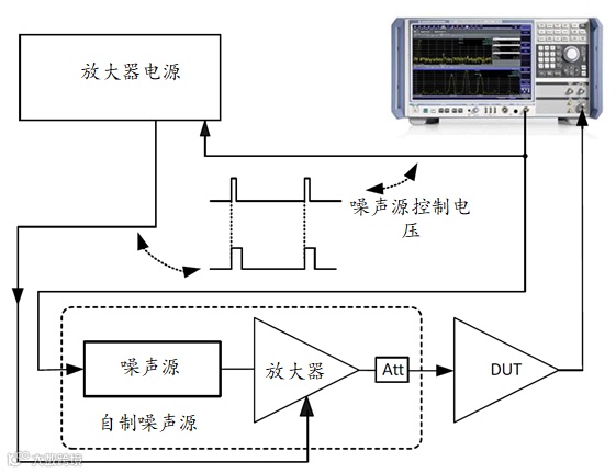 以自制噪声源代替标准噪声源,进行DUT的噪声系数测试;