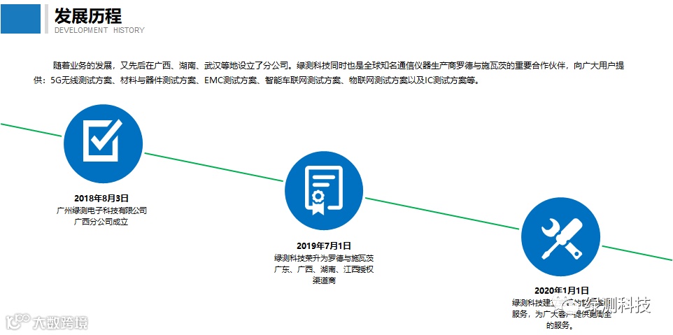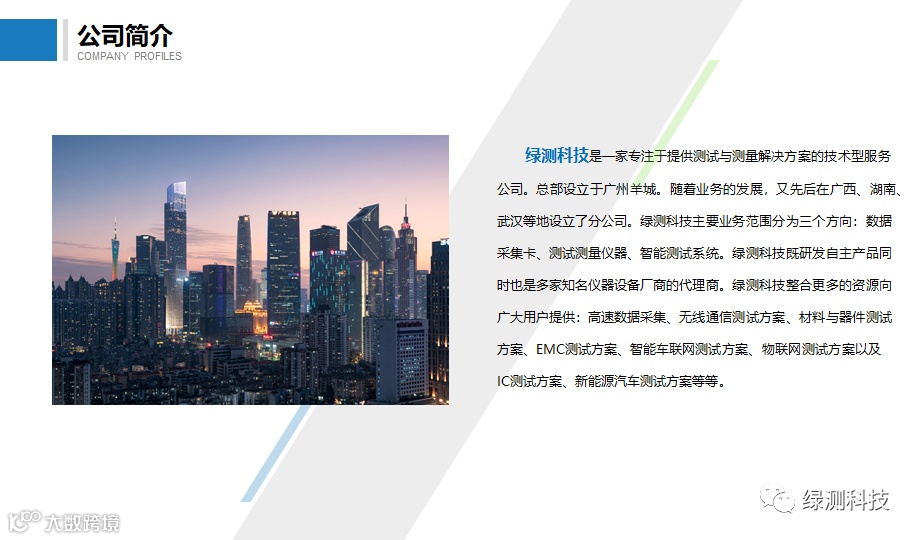 广州绿测电子科技有限公司(简称:绿测科技)成立于2015年11月,是一家专注于耕耘测试与测量行业的技术开发公司。绿测科技以“工程师的测试管家”的理念向广大客户提供专业的测试管家服务。