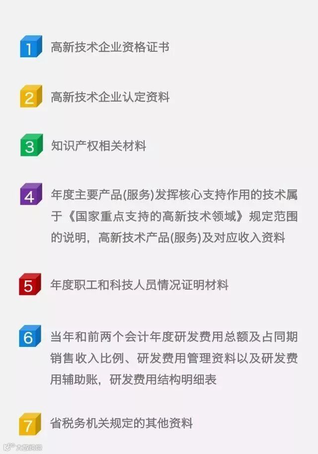 《国家税务总局关于实施高新技术企业所得税优惠政策有关问题的公告》(国家税务总局公告2017年第24号)规定:享受税收优惠的高新技术企业,每年汇算清缴时应按照《国家税务总局关于发布〈企业所得税优惠政策事项办理办法〉的公告》(国家税务总局公告2015年第76号)规定向税务机关提交企业所得税优惠事项备案表、高新技术企业资格证书履行备案手续,同时妥善保管以下资料留存备查: