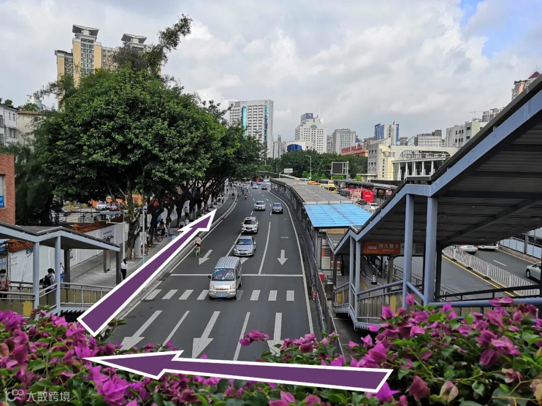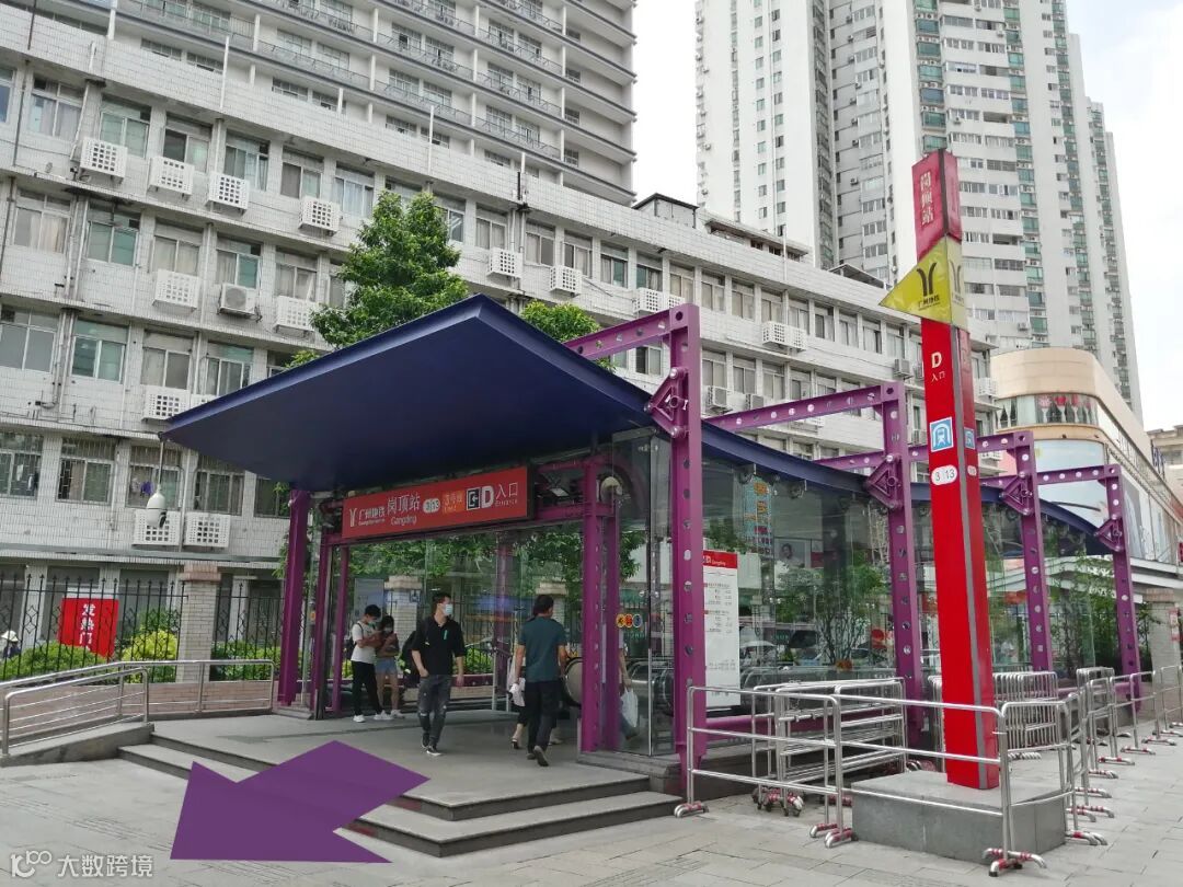 岗顶公交站 上 跟着 紫色箭头 的方向一直走,走过 停车场 再往前就是 天河商贸大厦 的入口,往里走乘坐电梯直接上 13楼 。
