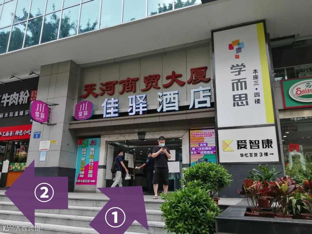 跟着 ①号箭头 走,天河商贸大厦 入口往里走乘坐电梯直接上 13楼。