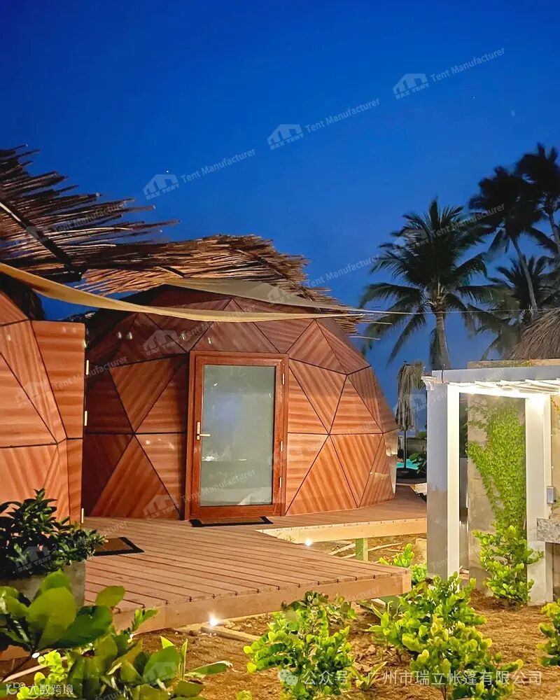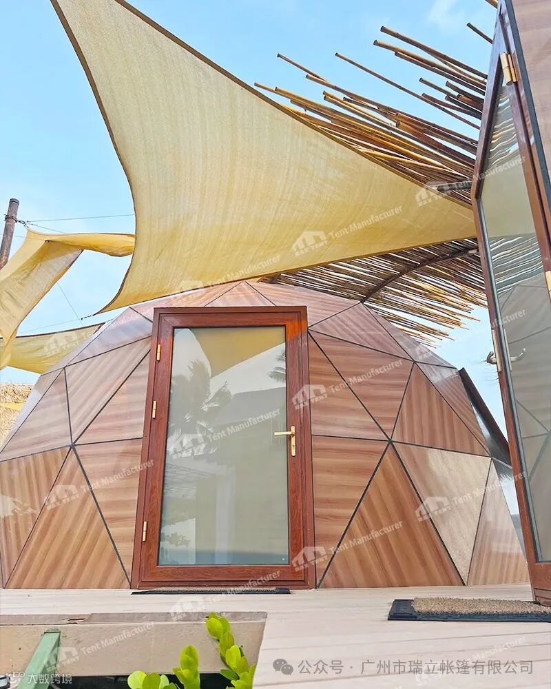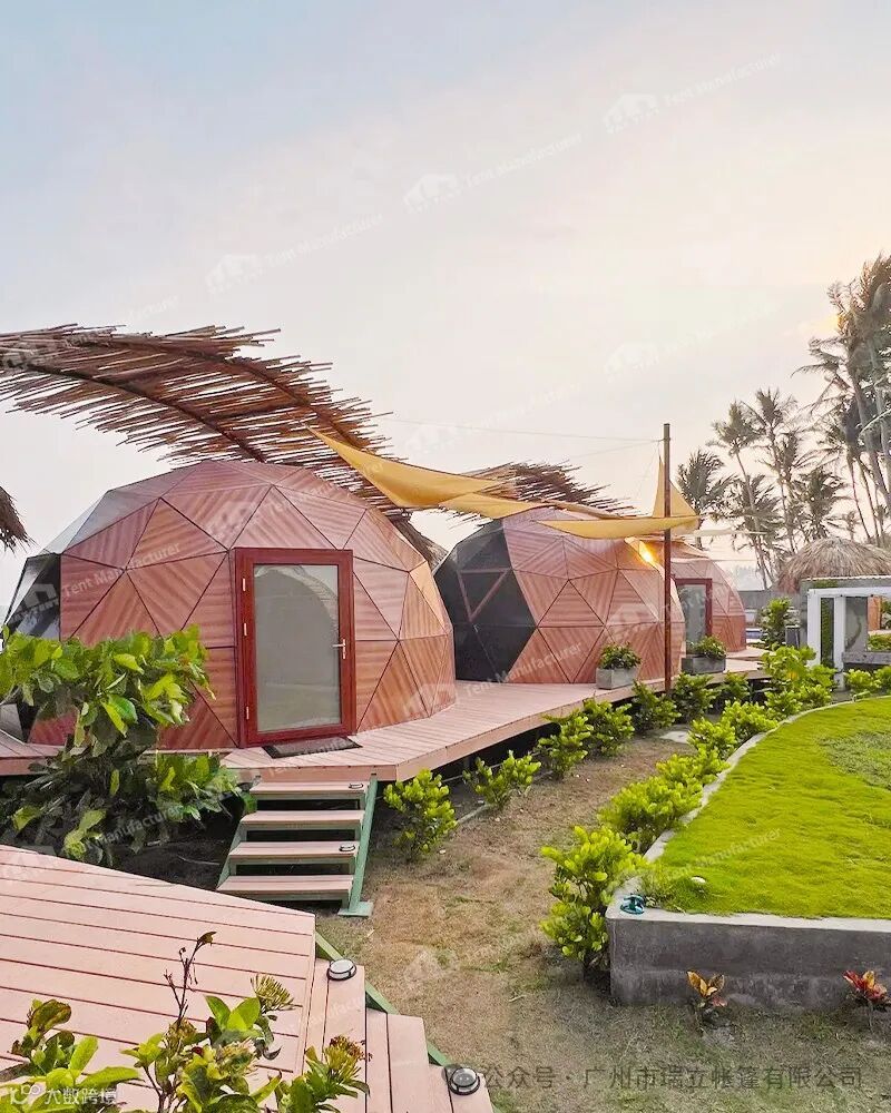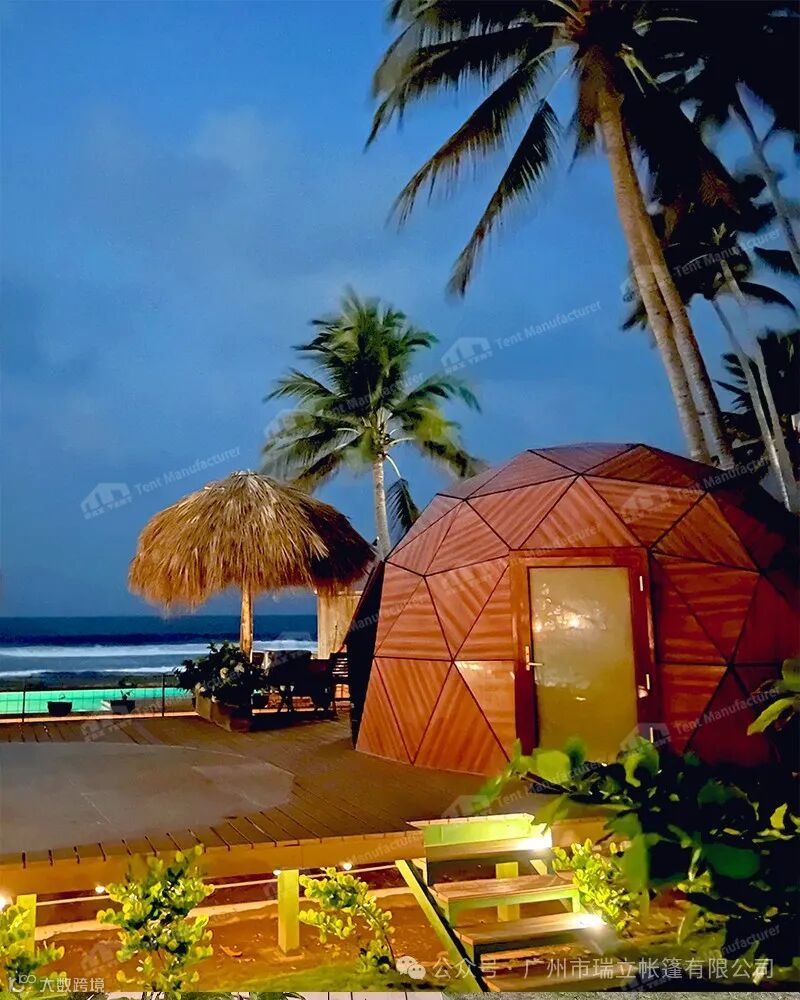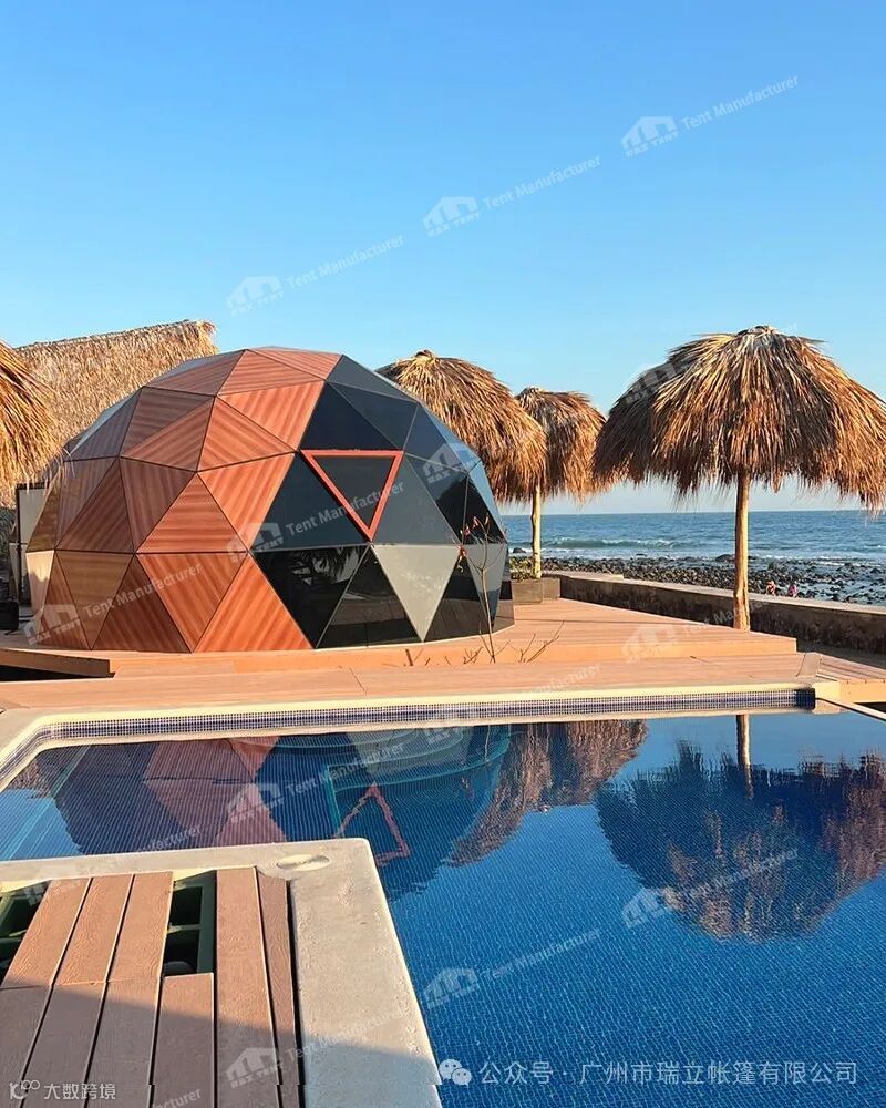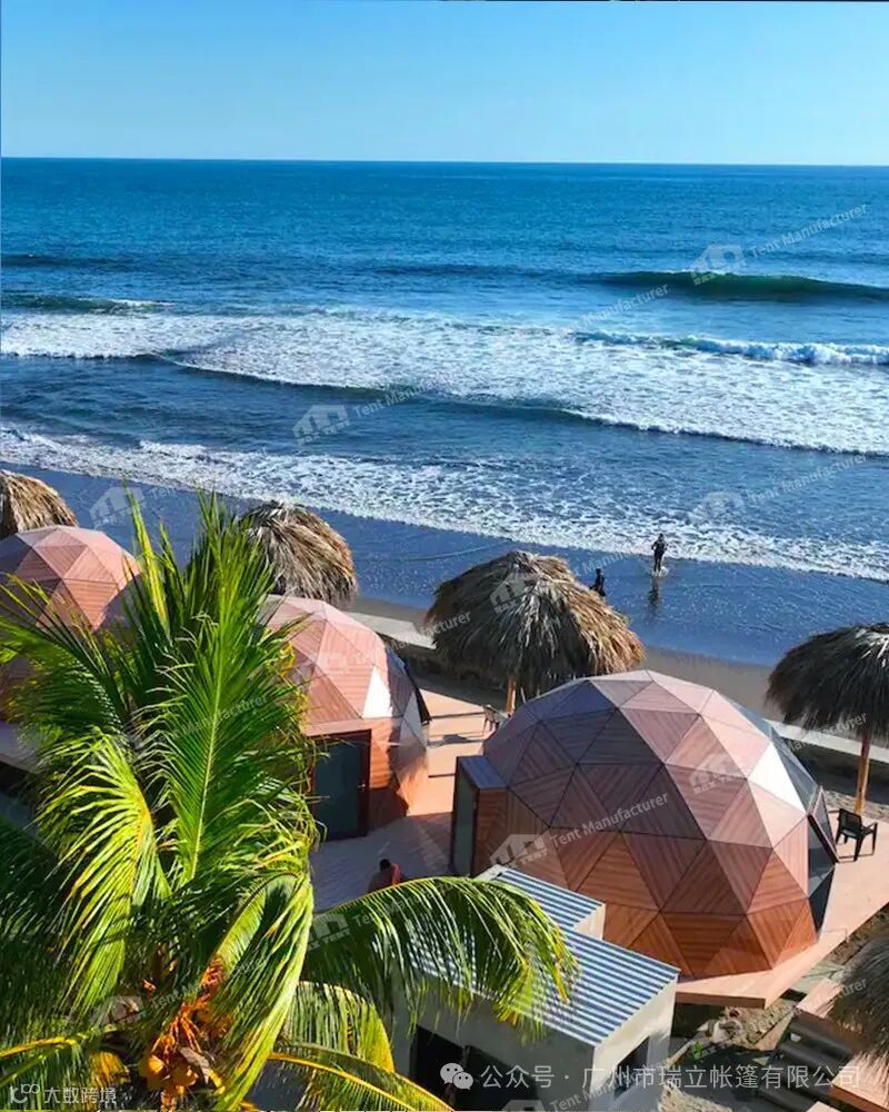 Almare Zonte - BeachFront Glamping Hotel坐落于埃尔蒙特,靠近埃尔宗特海滩(El Zonte Beach),其中的木色玻璃星空房,球形的造型+木色的外观相结合,充满了森系特色与悠闲自然的家庭度假氛围,深受营地业主和家庭使用的喜爱。