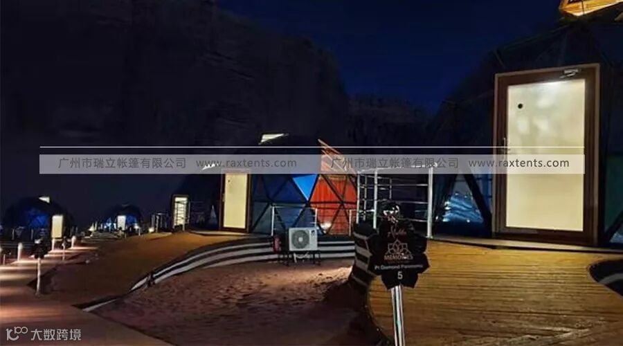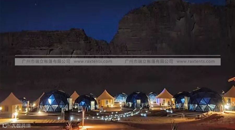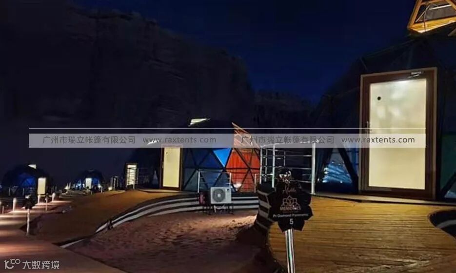 瑞立帐篷为客户在月亮谷营地提供了15座6米直径,10座7米直径玻璃球来打造旅游营地,在玻璃酒店星空帐篷的设计中,帐篷酒店的每个配件都结合了客户的想法和在沙漠的使用环境。