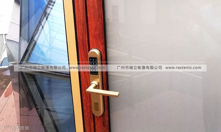这次的玻璃门相比常规的单开玻璃门添加了密码锁,密码门的设计解决了客户的防盗问题且安全性高,密码门开锁时间短,开启方便快捷,防盗等级高,非常适合户外文化旅游营地。