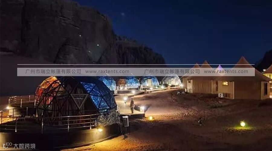 很多人梦想在广袤无垠的沙漠、一望无际的雪地、郁郁葱葱的森林里面居住一晚,放飞自我,享受大自然的乐趣。瑞立帐篷公司在世界著名的酒红色山谷——月亮谷匠心打造精品工程,玻璃球酒店帐篷就在广袤无垠的沙漠里,搭建完成便深受客户和当地游客的喜爱。