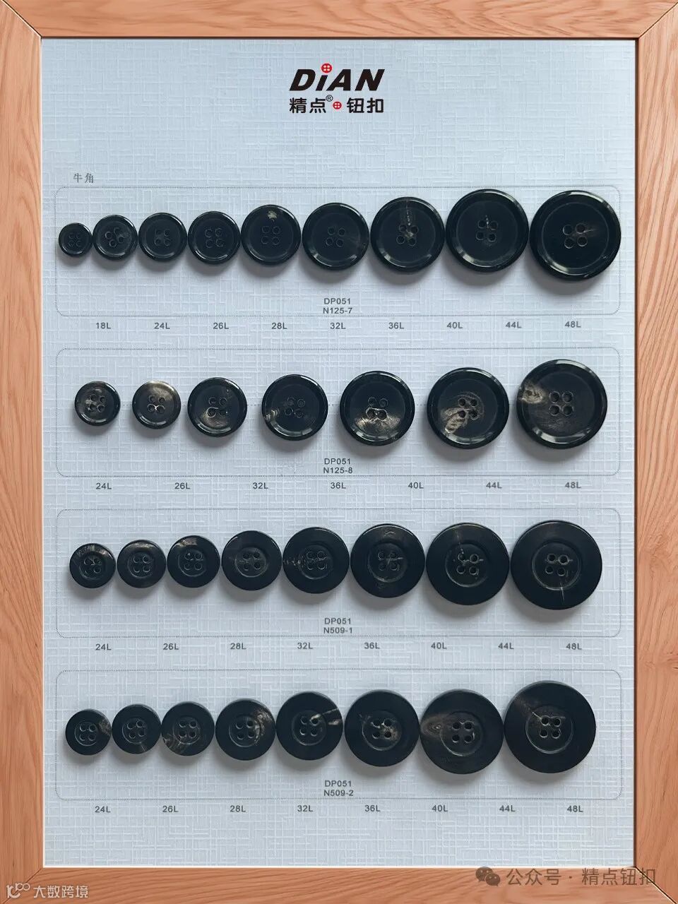 牛角扣,采用优质的印度天然水牛角,经过长时间上万次的抛光打磨,恒温室内自然晾干,每一颗钮扣都展现出深邃的光泽和独特的纹理。牛角,作为大自然的馈赠,其独特的纹理和色泽,让每一颗钮扣都拥有独一无二的魅力。随着时间的推移,它不仅不会褪色,反而会在岁月的洗礼下,愈发显现出温润的光泽。