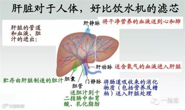 简单的讲,肝脏是人体内最大的器官,它是人体的解毒工厂,它的构造极其复杂,所以至今为止,人类无法设计出人造肝脏,它的复杂度仅次于脑组织。所以让肝脏维持正常功能直接关系着人体的健康。肝脏可以使激素,酒精以及某些有害药物在体内失效。各种人体无法代谢的毒素都会由肝脏负责代谢,而代谢废物是通过胆管网络排出到十二指肠,再经过小肠和大肠排出体外。