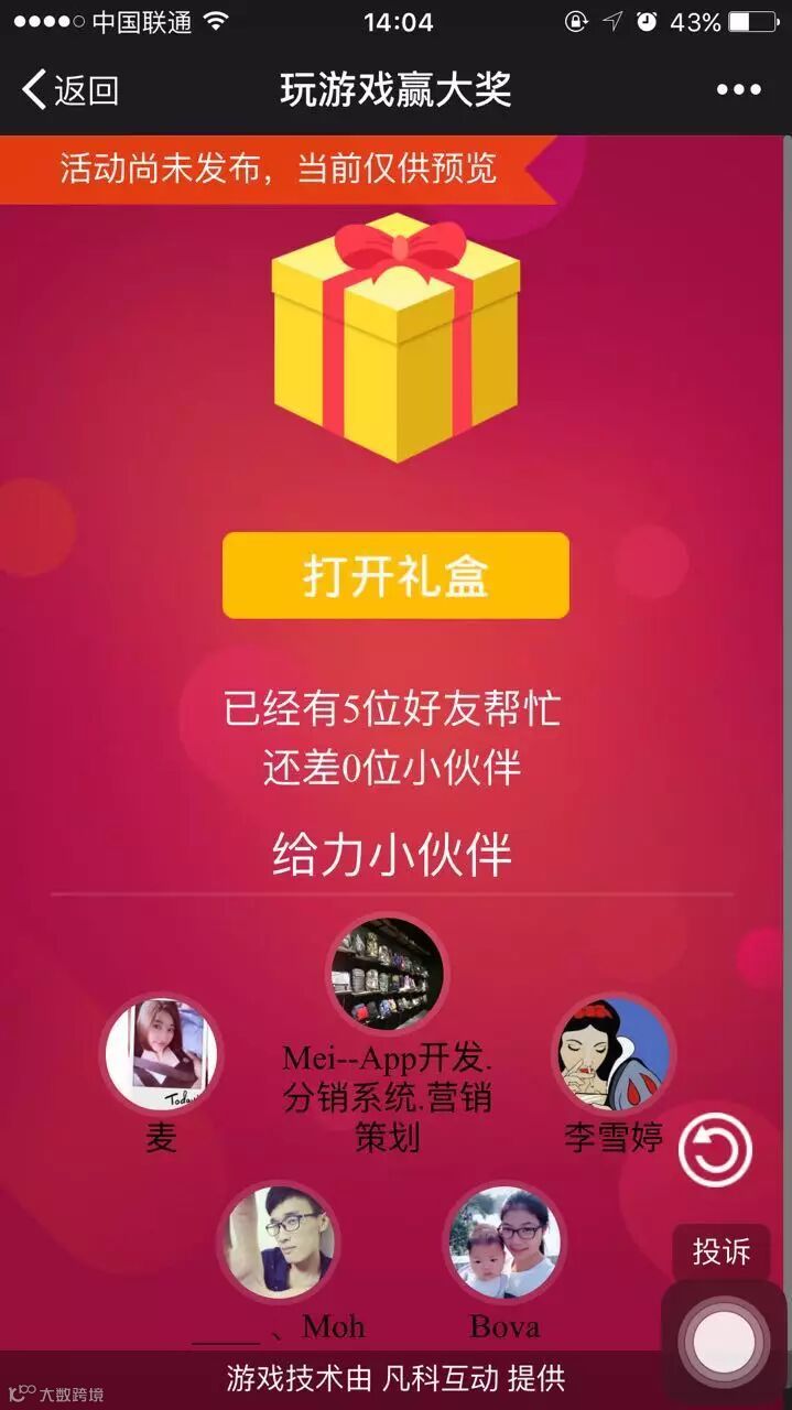 B.选中礼盒后,邀请好友帮你拆礼盒,集齐5位帮手成功赢取礼盒中奖品。