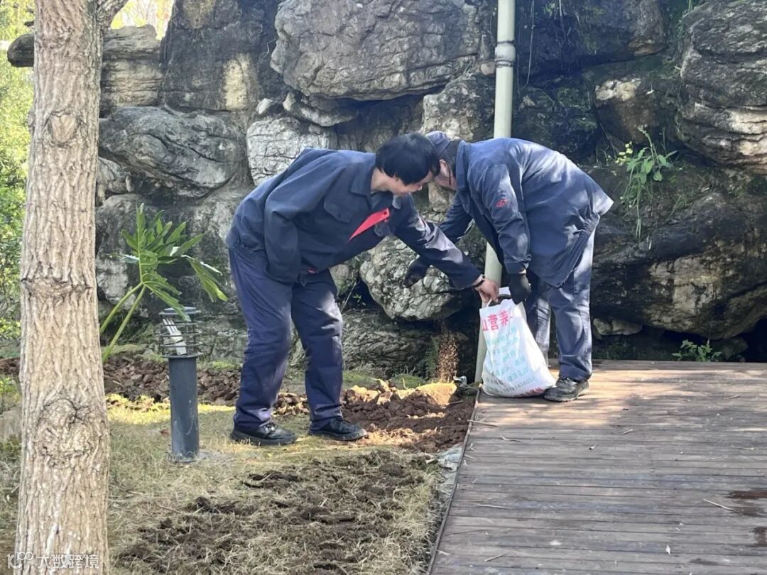 挖坑、扶苗、培土、踩实、浇水……每一道工序都有条不紊,每一个动作都认真细致。大家两两一组、三五成群,分工明确、配合默契,有的挥锹挖坑、有的扶正树苗、有的夯实土层、有的提水浇灌,汗水浸湿衣衫也丝毫不停歇,欢声笑语回荡在植树现场。
