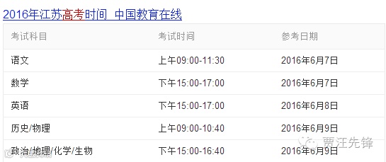 附上今年高考的考试时间表: