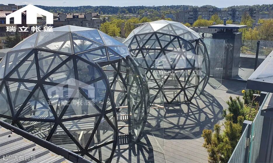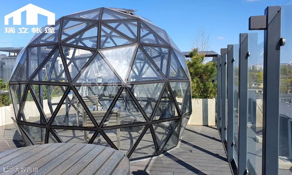 屋顶玻璃屋是很多朋友考虑的首选产品,球形网状结构的玻璃房外观美观大方,通透性很强,有非常好的光线和视野,在楼顶天台建私家花园或者个人独立的休息室,茶室,观星空间都完全无任何遮挡,大气又实用。
