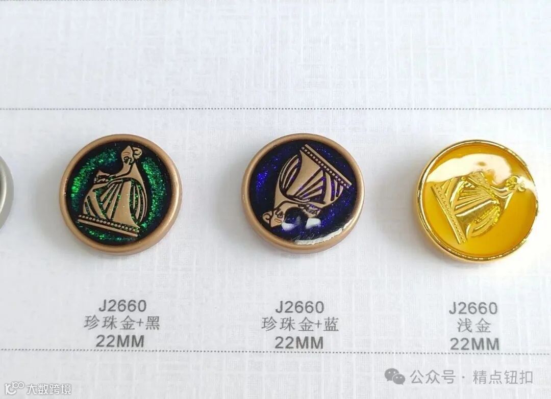 金属钮扣的独特之处在于它的质地和光泽。不同于布质钮扣的柔和,金属钮扣带来的是一种刚毅和力量感。它们可以是简约的圆片,也可以是复杂的雕花,每一颗钮扣都是一个微型的艺术。