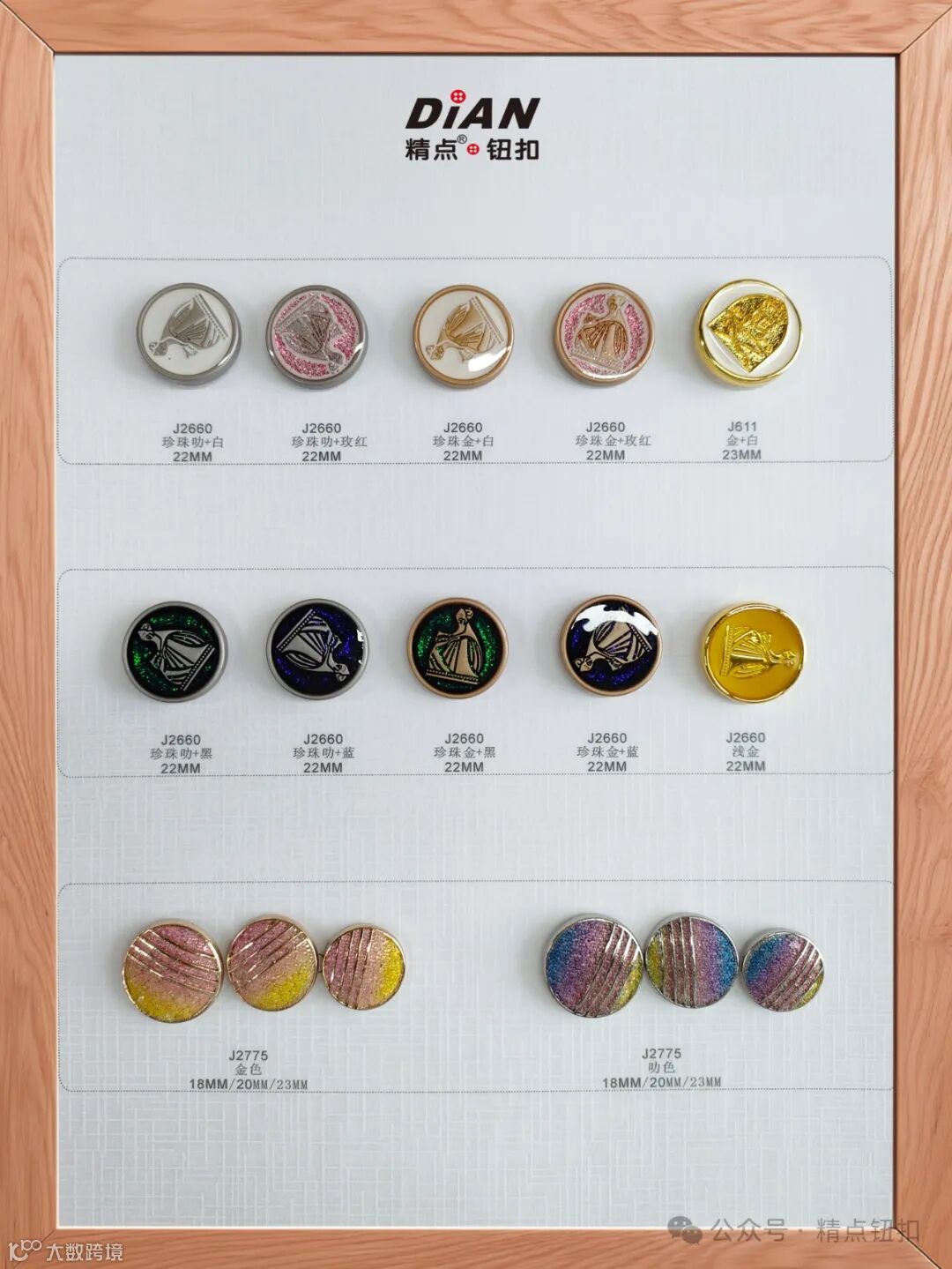 精点钮扣金属钮扣的独特之处在于它的质地和光泽。不同于布质钮扣的柔和,金属钮扣带来的是一种刚毅和力量感。它们可以是简约的圆片,也可以是复杂的雕花,每一颗钮扣都是一个微型的艺术。