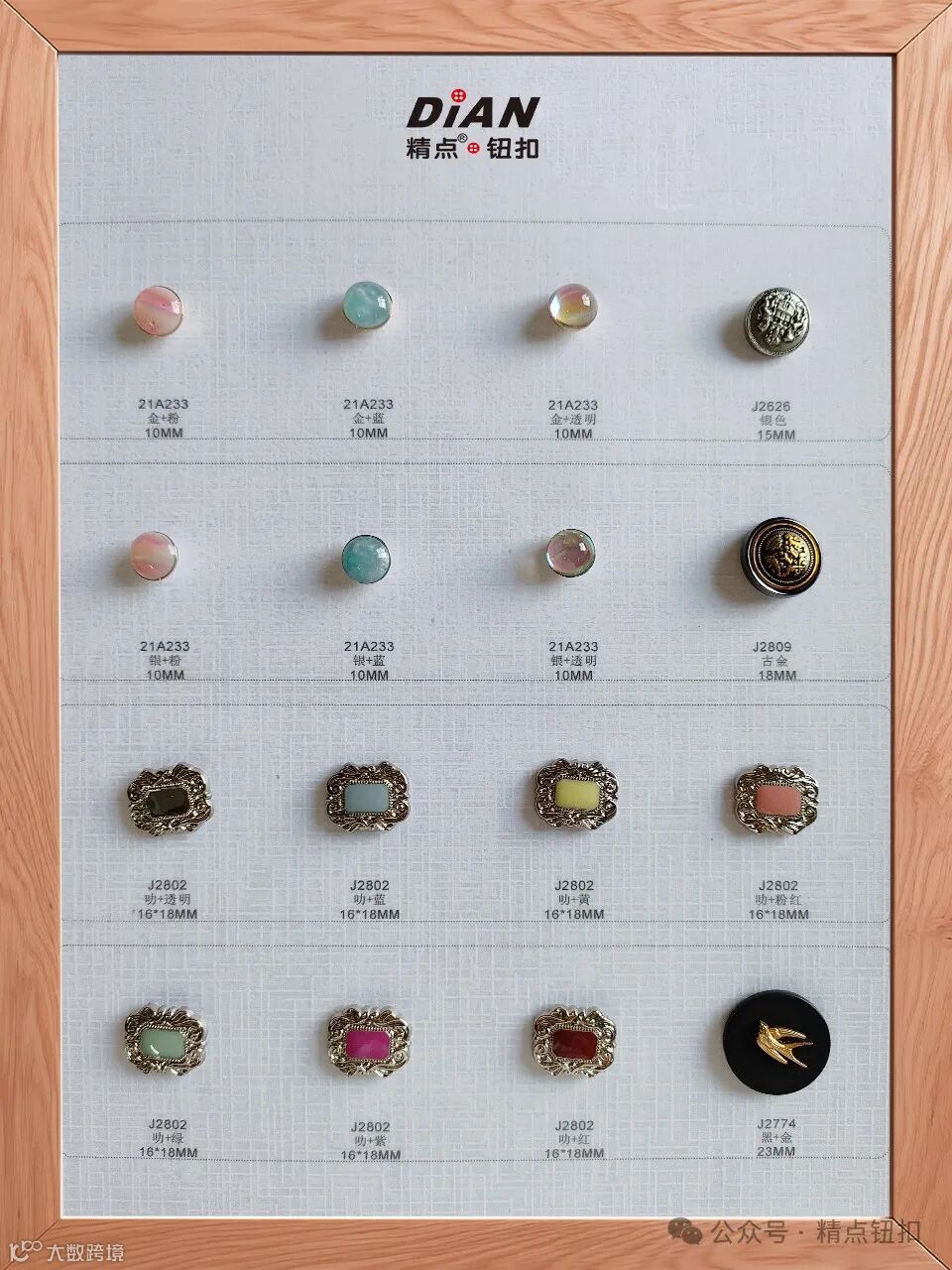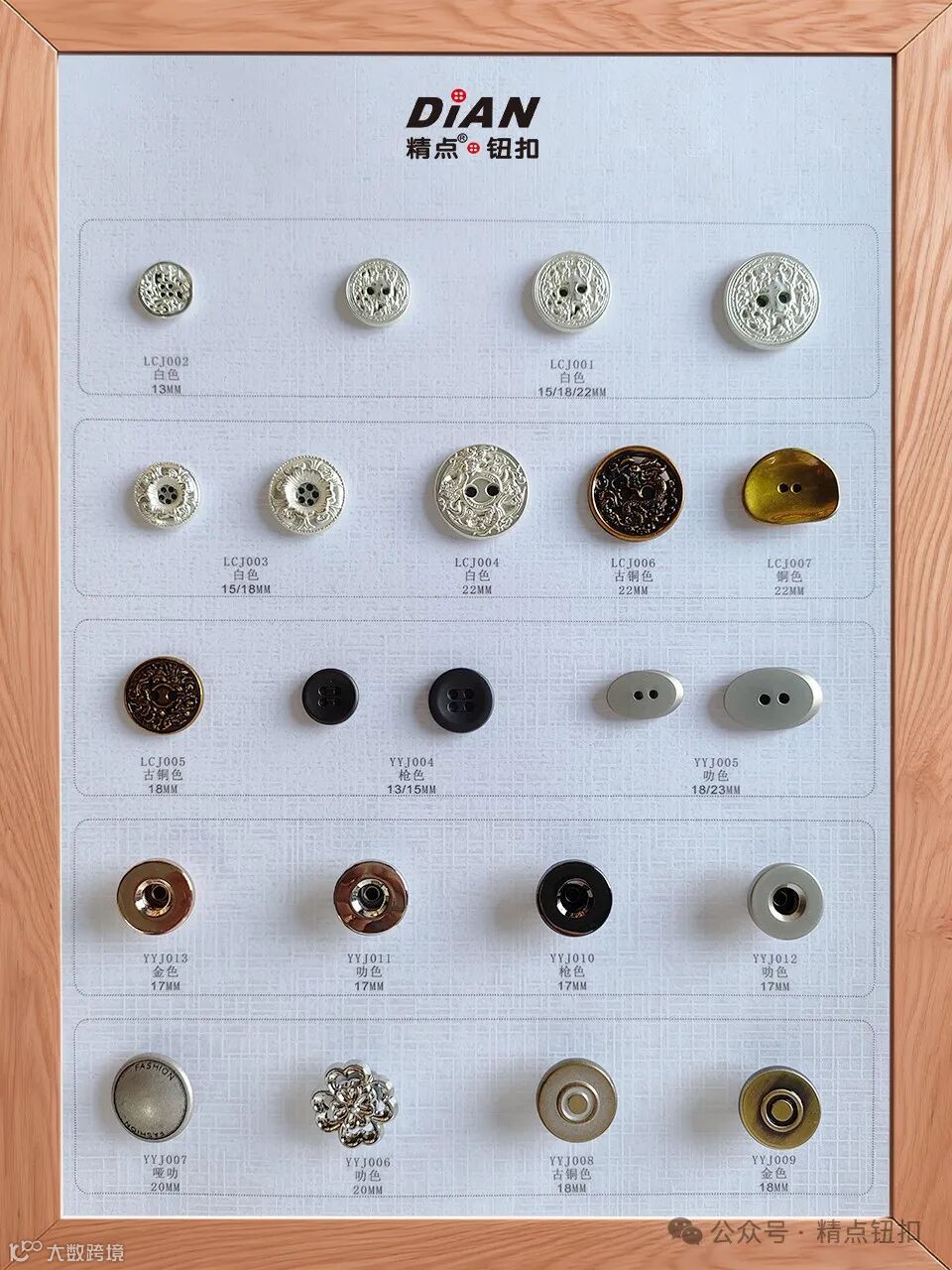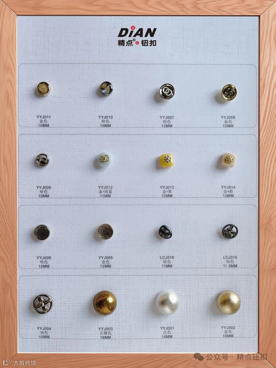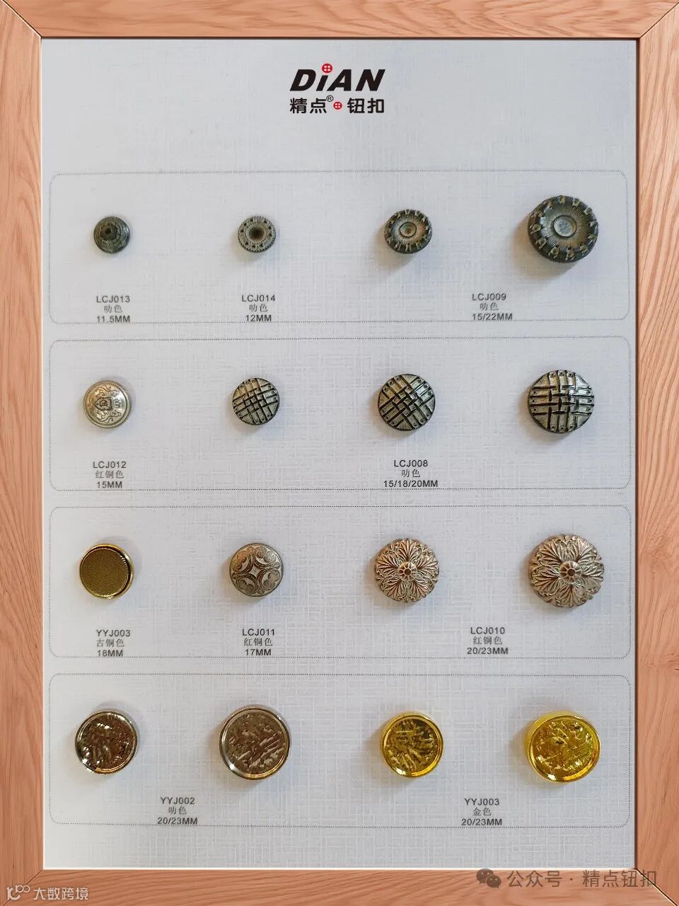 精点纽扣作为专注做中高端纽扣产品的品牌,推出新款金属纽扣,为追求时尚品味的服装提供了更多选择。