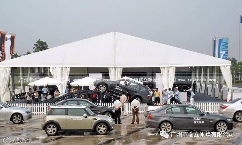 在产品的用途上,车展帐篷是较为常见的应用领域之一。瑞立帐篷曾与宝马、奔驰、凯迪拉克等多个汽车品牌合作多次。在产品的设计及制作环节,瑞立更为重视将活动现场环境与车展车型及品牌进行更紧密的结合,从而为客户提供更具针对性的帐篷解决方案。