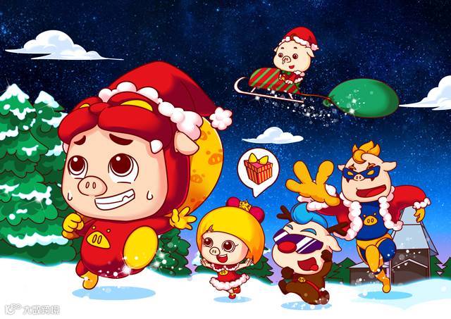 我天!一大堆宝宝喜欢的动画明星都跑进去了,正准备“盒你一起过圣诞”!当然也包括大脸男神猪猪侠啦!