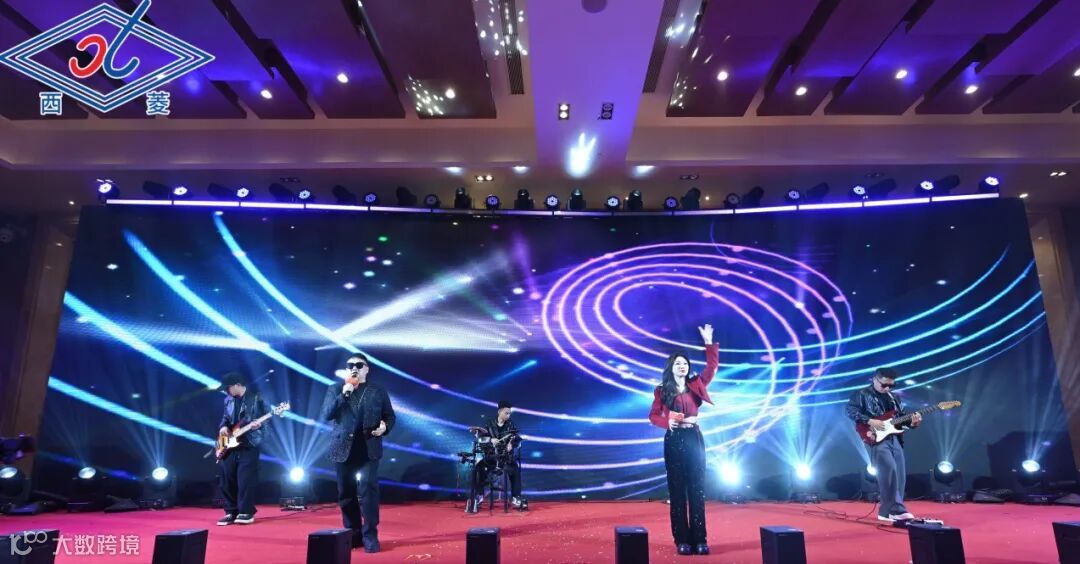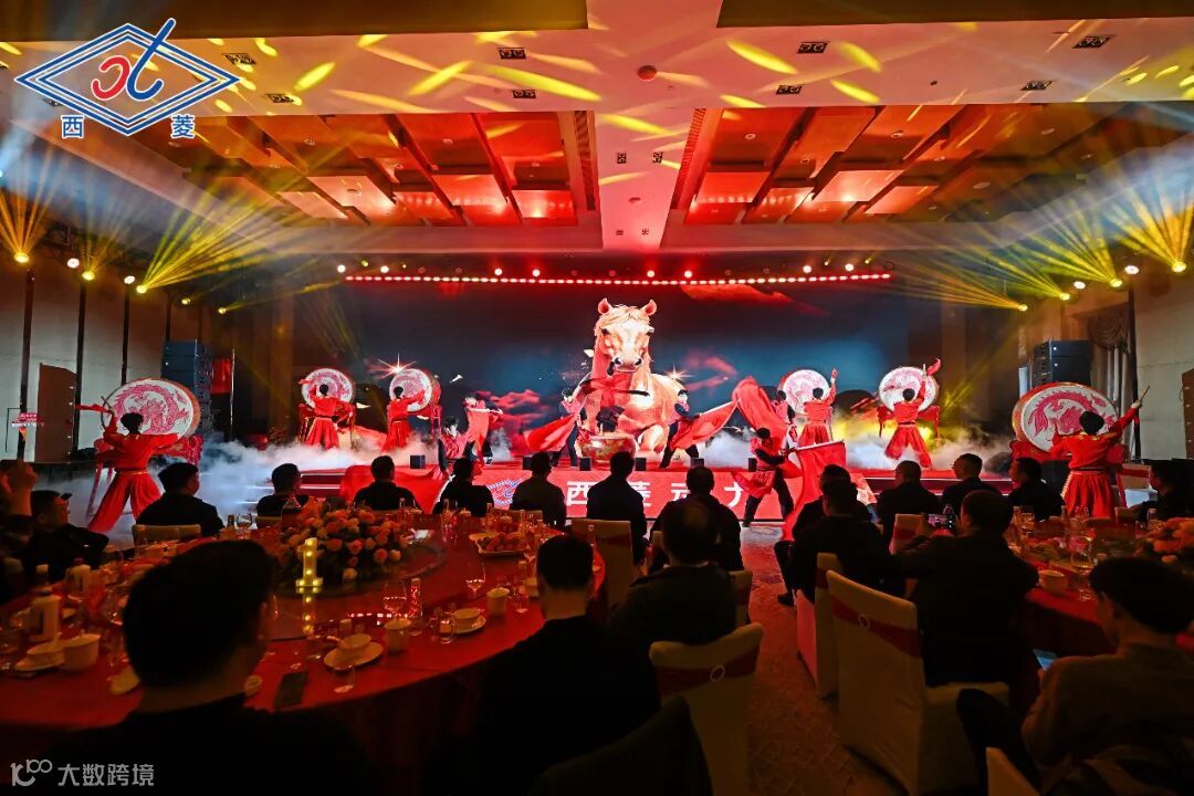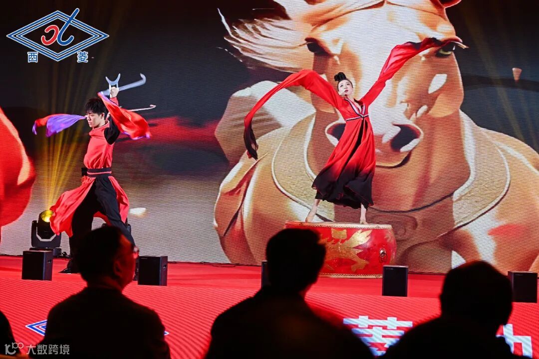 一束束明亮的激光刺破黑暗,光影交织间,科技感十足的光束搭配激昂的背景音乐,明暗交错、虚实相映,每一道光影都承载着西菱人的初心与坚守,每一次闪烁都彰显着企业的蓬勃朝气,瞬间点燃全场热情,为整场年会拉开了恢弘而充满科技感的序幕;紧接着,鼓舞《金鼓齐鸣》震撼亮相,鼓点铿锵有力,舞姿昂扬向上,每一次击打都凝聚着西菱人奋勇争先的劲头,每一个姿态都彰显着企业蓬勃发展的生机,将现场氛围推向第一个高潮。