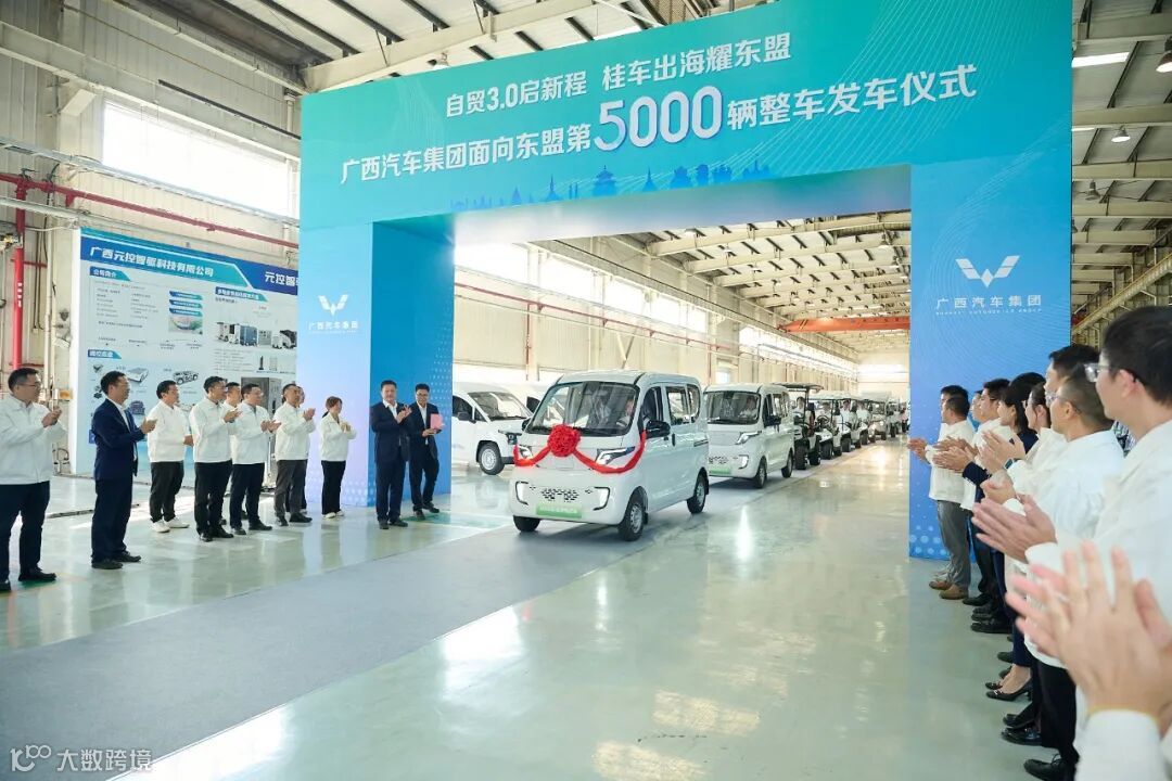 在集团相关负责人以及媒体伙伴的见证下,发往越南的G050新能源物流车、高尔夫球车、黄金小卡缓缓驶下生产线,这是广西汽车集团发展东盟战略的生动缩影。第5000辆整车,不仅是一个数字,更是集团十余年来在东盟市场从“走出去”到“扎下根”的印证。