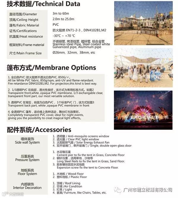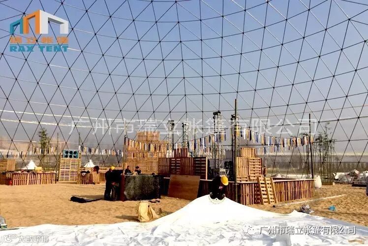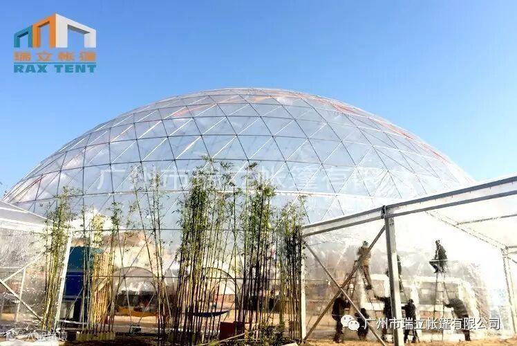 广州市瑞立帐篷有限公司已经成功完成50米球体帐篷的搭建,并成功使用(瑞立工厂有50米帐篷的实体产品,欢迎上门考察)。