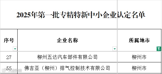 柳州五达、佛吉亚(排气)入选