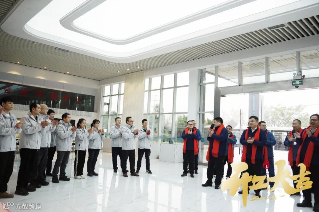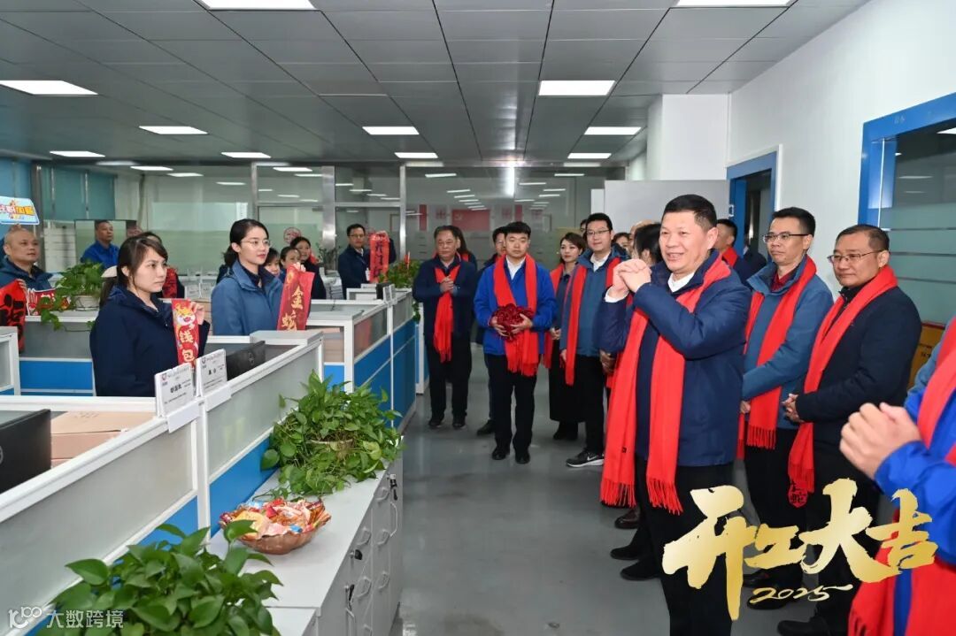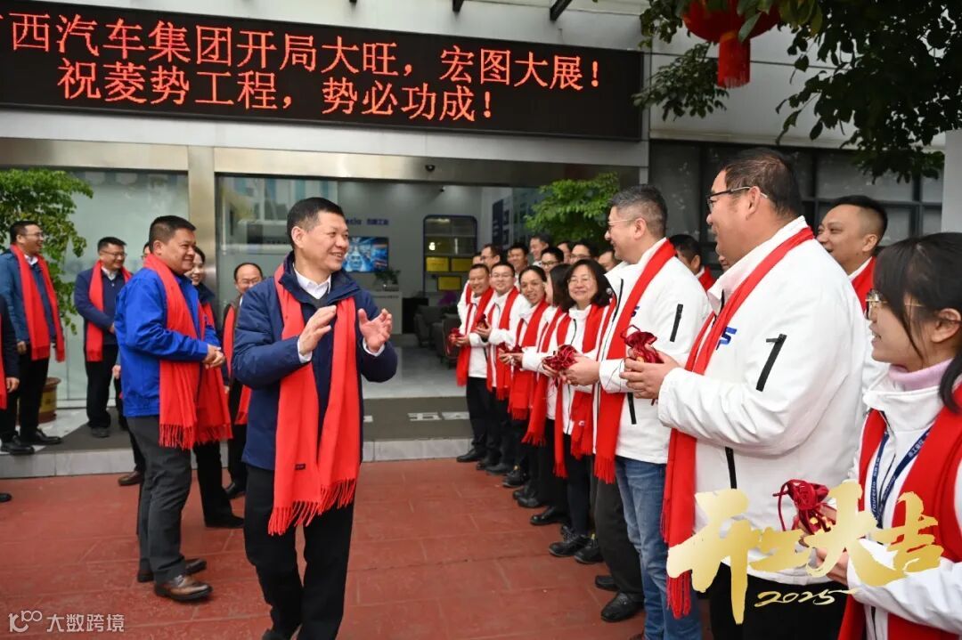 同一时间,集团总经理陈晓峰另率一队来到五菱科技、车合互联拜年。2024年,五菱科技焕新向上,各项业务取得不错的成绩,车合互联在集团数字化转型方面做出很大贡献。陈晓峰首先感谢五菱科技、车合互联全体员工过去一年的辛勤工作,希望大家在新的一年铆足干劲,大力发展,新的一年创下更好的成绩。