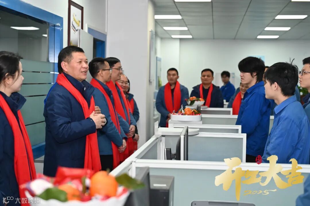 随后,袁智军一行前往制造大楼,分别向集团规划运营部、创新发展部及工业公司各部门员工拜年,感谢广大员工的辛勤劳动和贡献,公司不仅圆满达成了既定的各项目标,更为未来发展奠定了坚实基础。展望新的一年,袁智军希望各部门发挥各自所长,对工作充满无限闯劲和激情,新年取得更大突破。