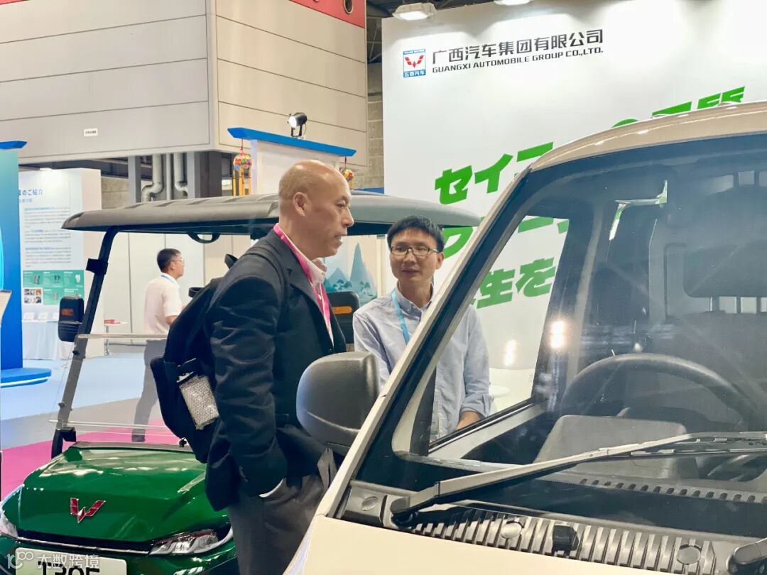 本届博览会由中国广西壮族自治区商务厅、工业和信息化厅主办,日本大阪商工会议所联合主办,一般财团法人大阪国际经济振兴中心特别合作举办。现场,广西汽车集团新能源纯电动厢式物流车、电动高尔夫球车两款实车十分匹配日本需求场景,备受欢迎,观众不时询问车型细节。