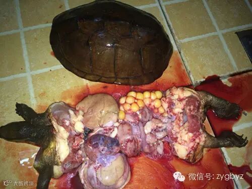 上两图为南海某龟友病龟解剖图
