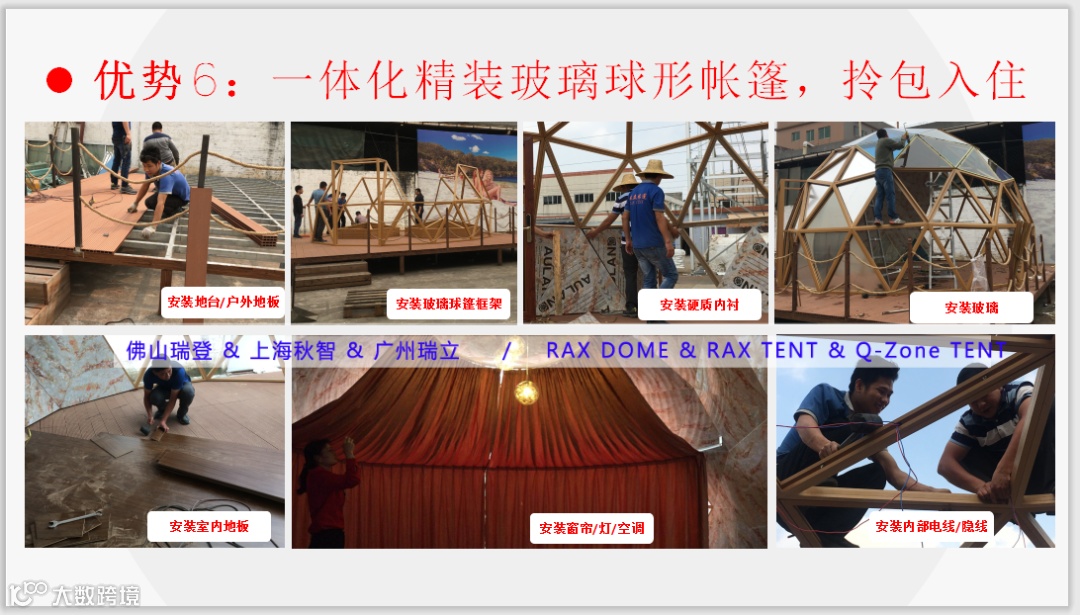6) 一体化精装玻璃球形帐篷酒店和PVC球形帐篷酒店,拎包入住,全程无忧,前期环节少操心,营业之后快速盈利。
