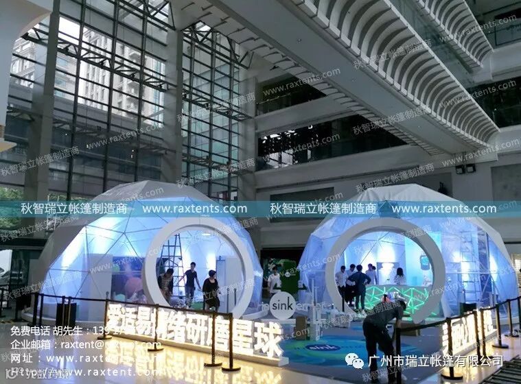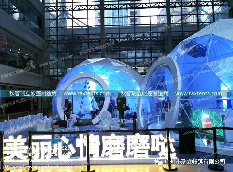 瑞立帐篷有限公司一直高度保持与不同行业的互动,与时代接轨,逐步与VR产业、酒店行业、野外露营、旅游等行业及领域融合,并在球幕投影帐篷、可移动式球幕影院、帐篷酒店、露营帐篷酒店等尝试创新。
