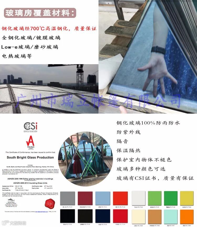 在户外营地帐篷酒店住宿更重要的是要考虑居住的安全性,包括人身安全和健康安全。玻璃帐篷的框架和钢化玻璃,完全没有任何甲醛等有害物质和气体,内部窗帘及地板等也是高端酒店品质家居,没有任何异味,即使经过长时间日晒雨淋,也不会有霉味和异味,安全至上。